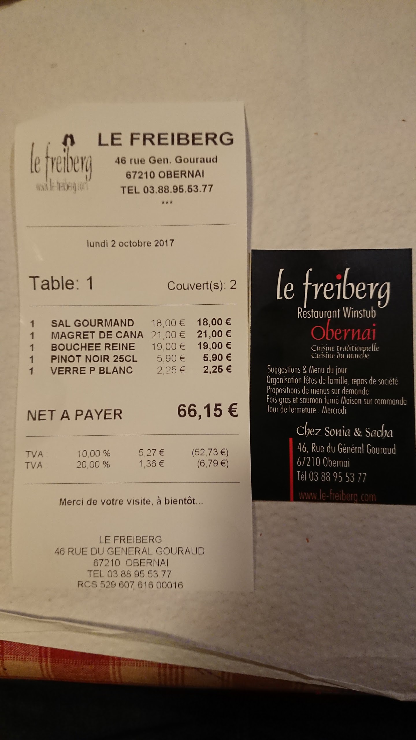Le Freiberg est de mon point de vue le meilleur restaurant d'Obernai (et pourtant la concurrence est rude) et l'un des meilleurs endroit où j'ai pu mangé, si vous passez dans cette ville n'hésitez pas à vous restaurer là-bas. Le cadre est chaleureux, la cuisine est raffinée... le reflet d'une belle maîtrise. Le rapport qualité/prix est correct. Et pour parfaire la note: tout les serveurs sont très agréable et de bon conseil. C'est l'endroit idéal pour passer un bon moment!