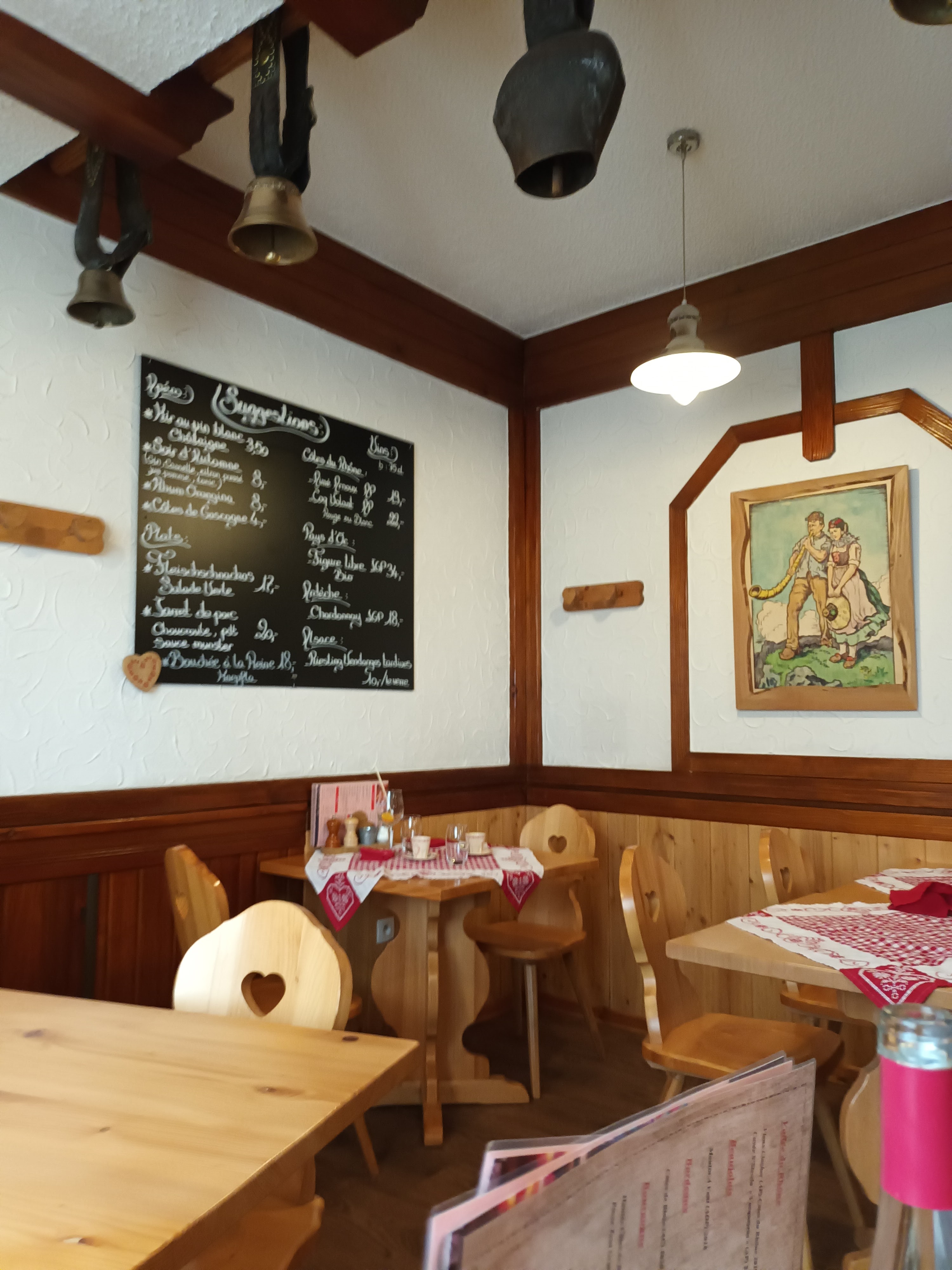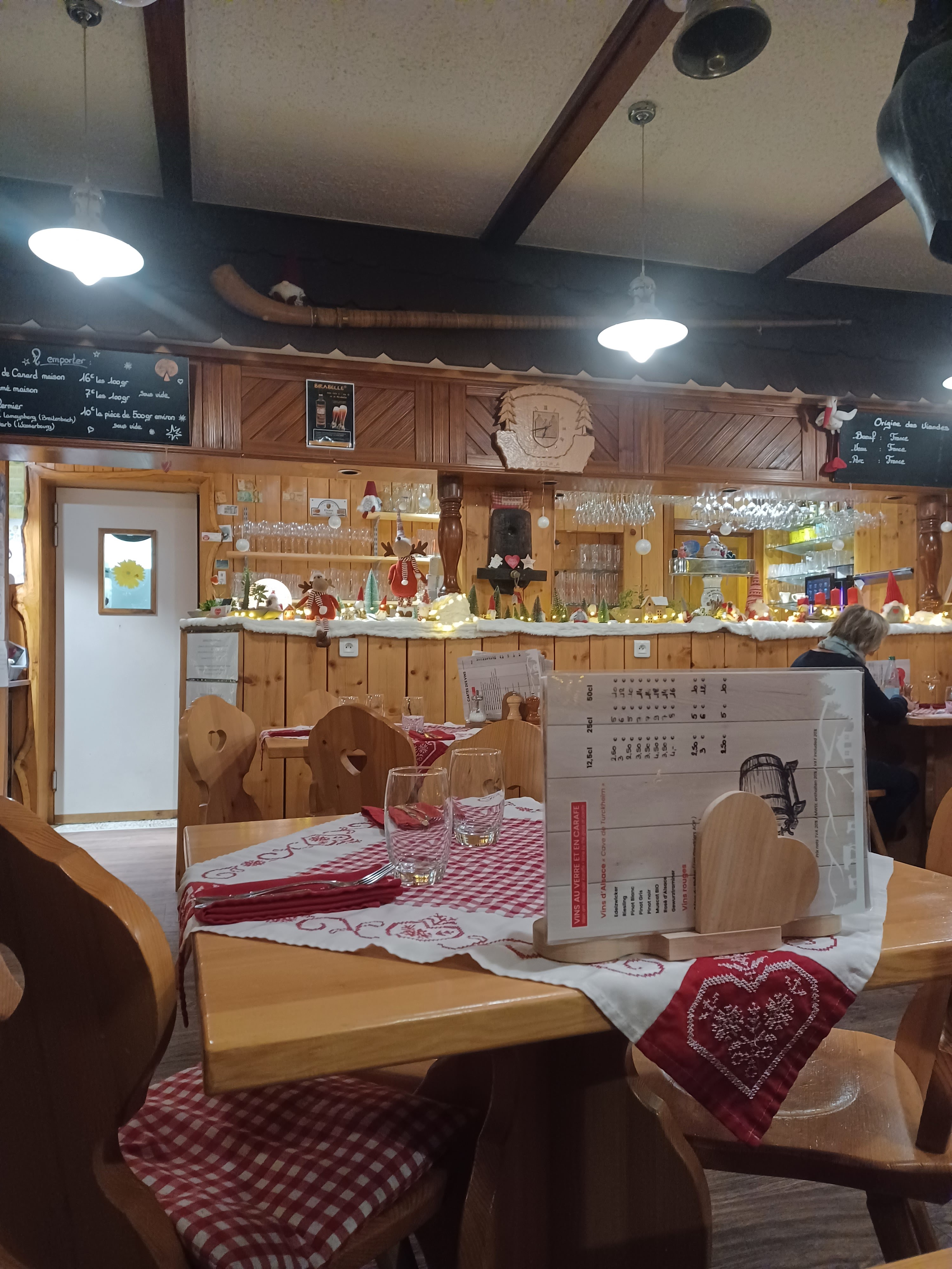 Ambiance Montagne / Pastorale avec toutes ces sonnailles au dessus de nos têtes .Spécialités alsaciennes, service rapide . Bon rapport qualité /prix .