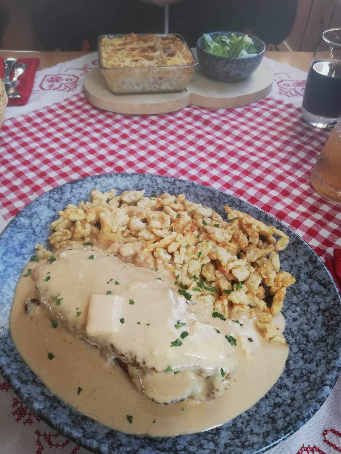 Le cordon bleu sauce munster ,je recommande!! Beau décor intérieur, serveuse et patrons très aimable, le chef à d ailleurs fait le tour des tables 👍😃