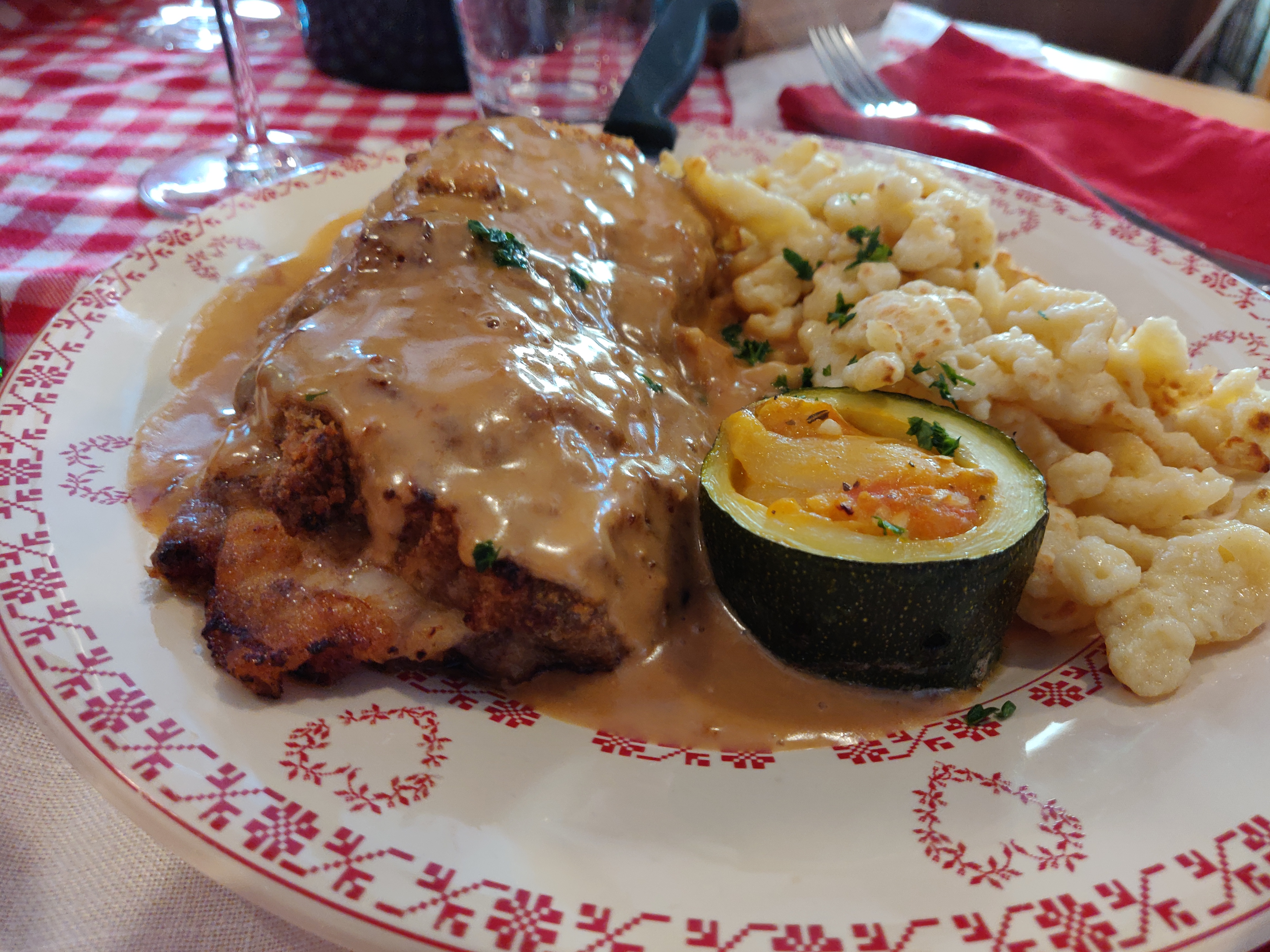 Venu un samedi midi, peu de monde, incompréhensible ! Les serveuses sont très chaleureuses, la cuisine est excellente et généreuse. Les cordons bleus et rouges ont été excellents. Les digestifs très bons et très généreux. Je recommande vivement !