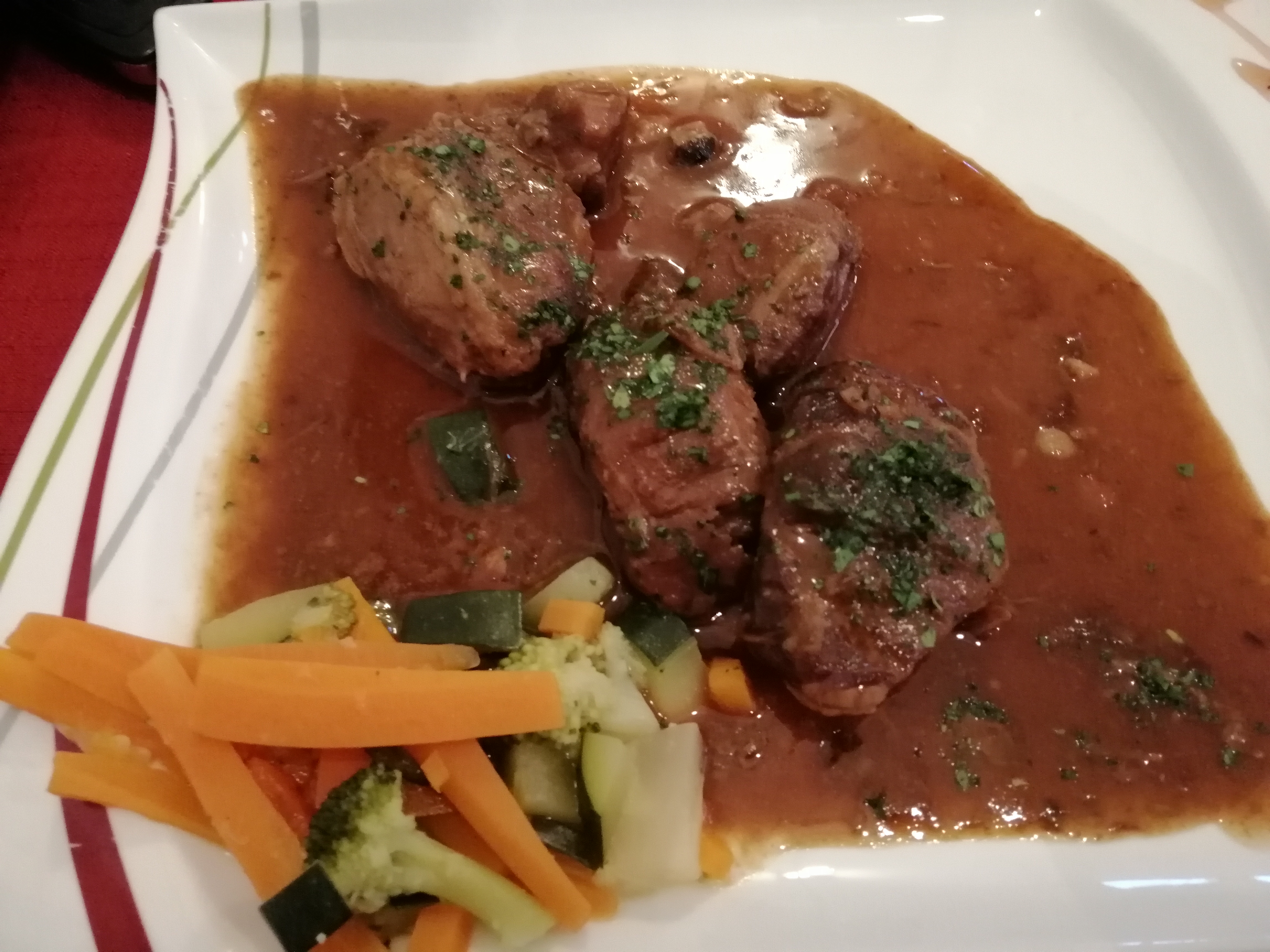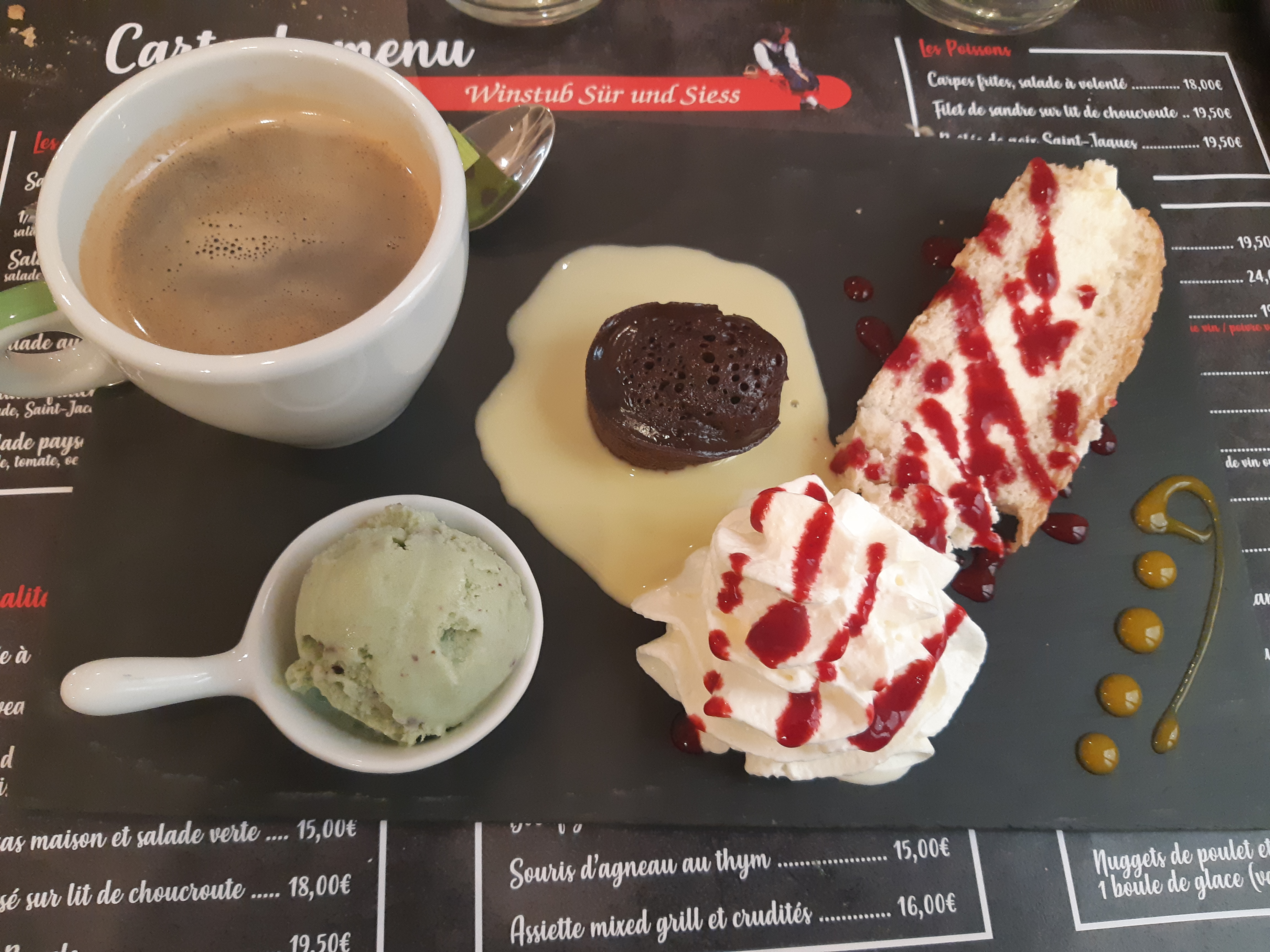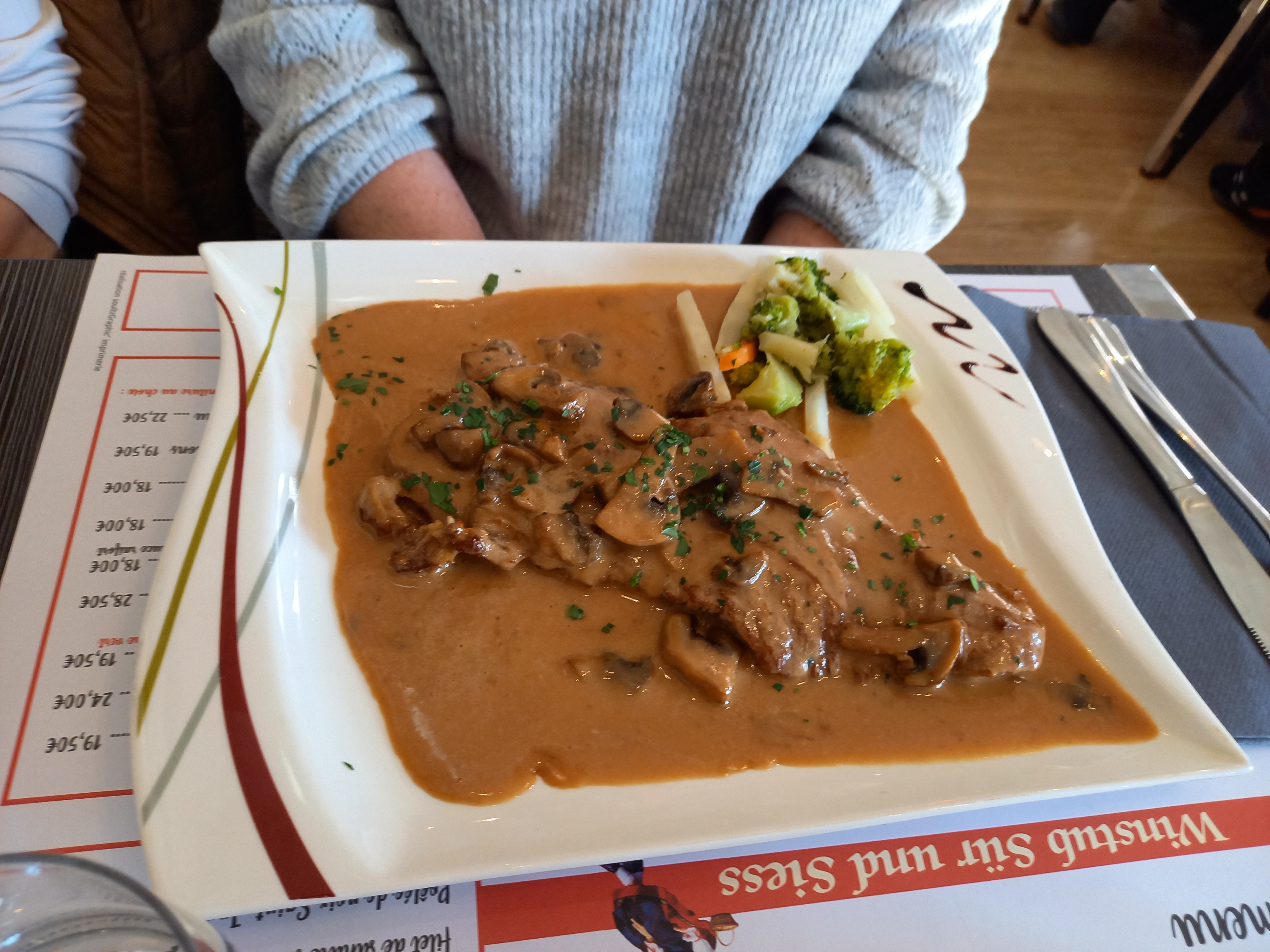 Repas bon dans l'ensemble. mais attention à la propreté des assiettes. Le rebord des assiettes était très sale ainsi que le ramequin de spaetzle. cela est inadmissible.