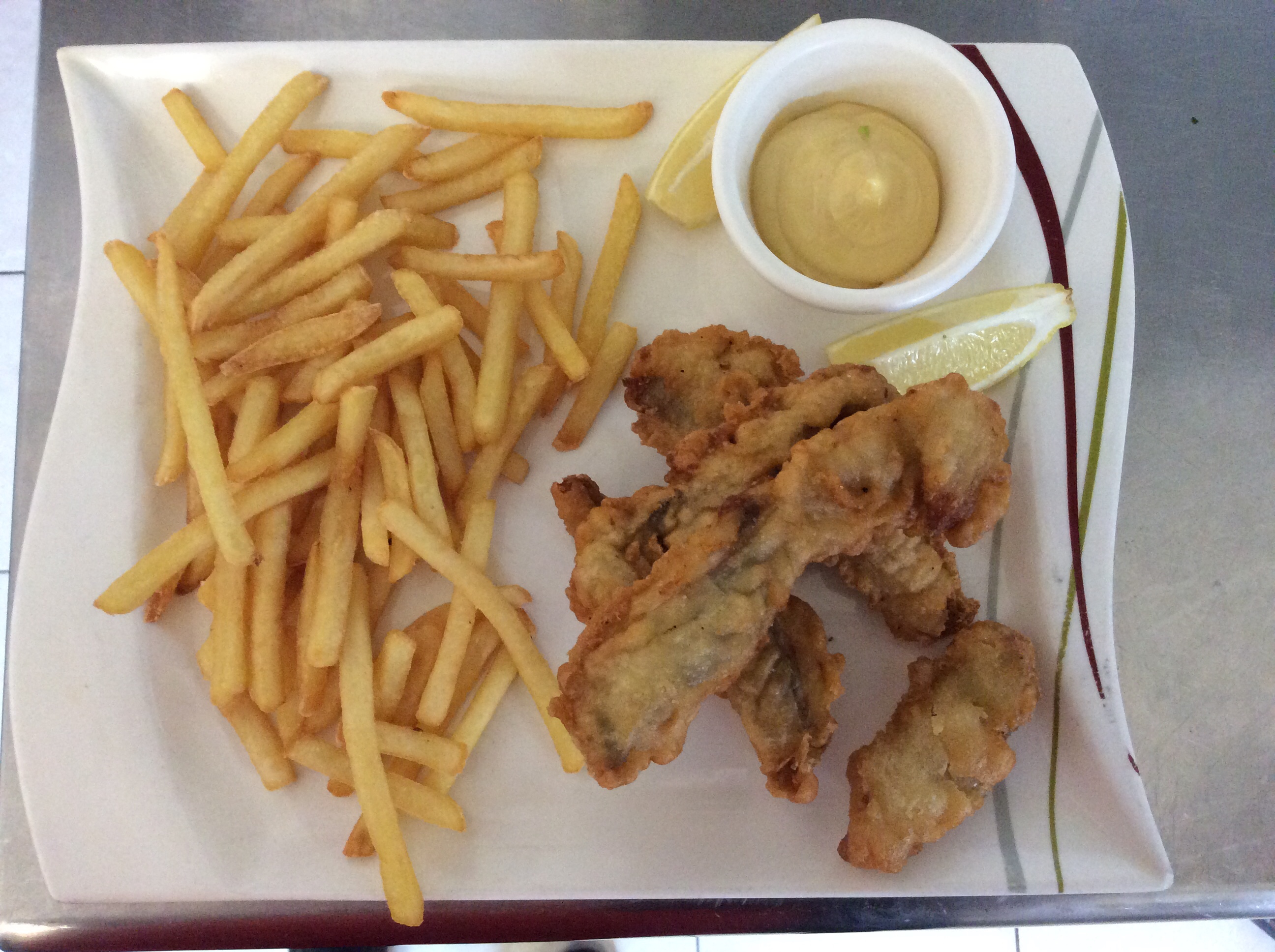 Très euphorique d’aller manger des carpes frites et l’euphorie est vite descendue. Frites baignées depuis 15 ans dans l’huile avec une couleur jaune pas normale. Et alors les carpes… panure très épaisse, saturation max en graisse et certaines cramées mais brillantes d’huile. Ok d’accord carpes frites c’est gras certes mais toutes celles que j’ai mangé ailleurs donnaient envie et étaient clairement pas trempées comme ça dans de la vieille huile probablement. Pourtant c’est très rare que je sois un client qui râle ou dit qqch, j’ai plutôt tendance à rien dire et partir mais là c’était abusé donc je le dis pour pas qu’ils fassent ça et progressent. En tant que cuisinier je sais même pas comment on peut ne pas avoir la lucidité un moment de dire « nan ça on peut pas envoyer » enfin sans être un chef renommé c’est juste du bon sens c’est ça qui m’exaspère! Jugez par vous même sur les photos mais bon comme dit tout le reste est peut être très bon et j’ai pas eu de chance mais svp pour vous et votre resto n’envoyez plus des trucs comme ça. Bonne continuation