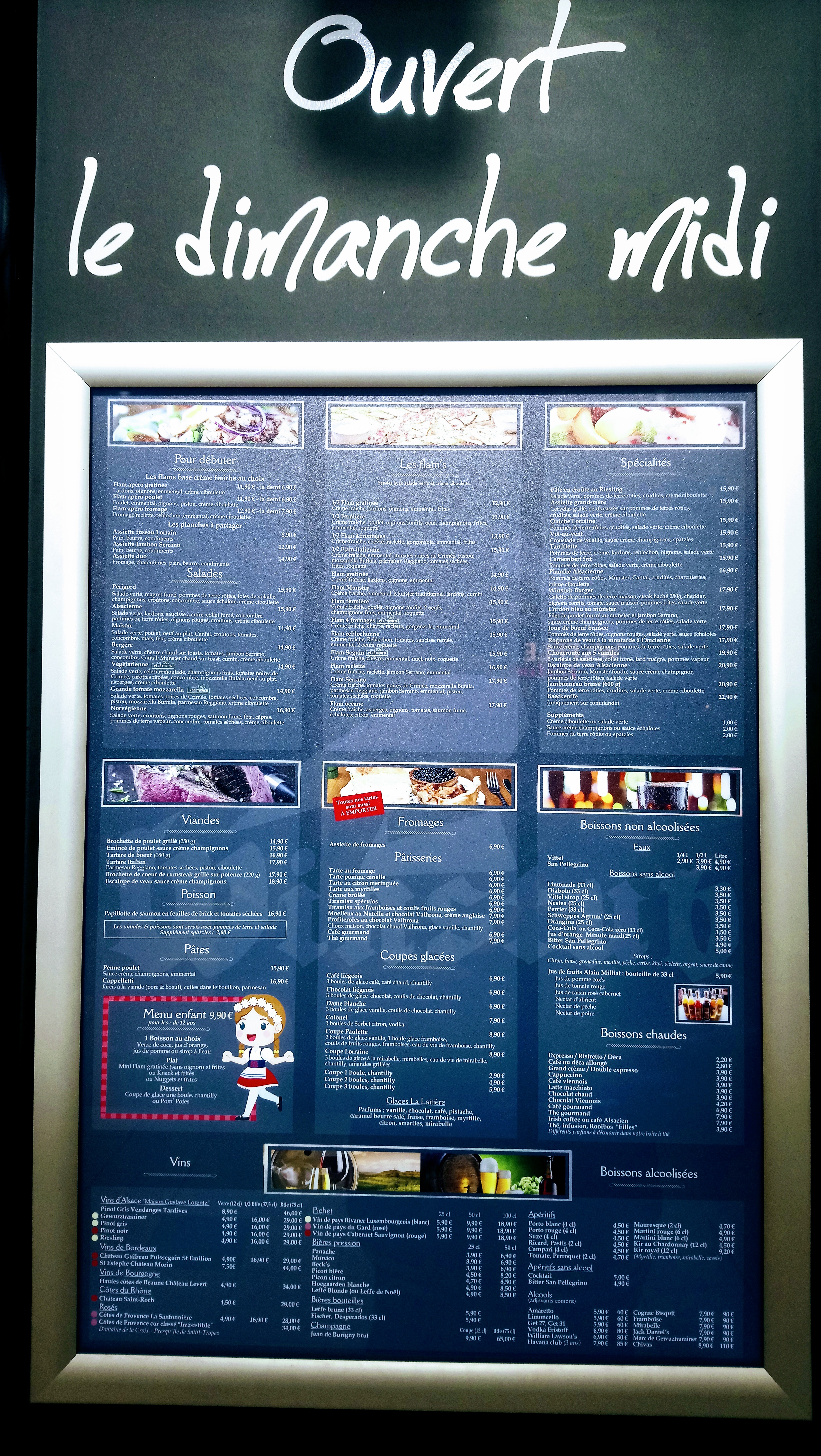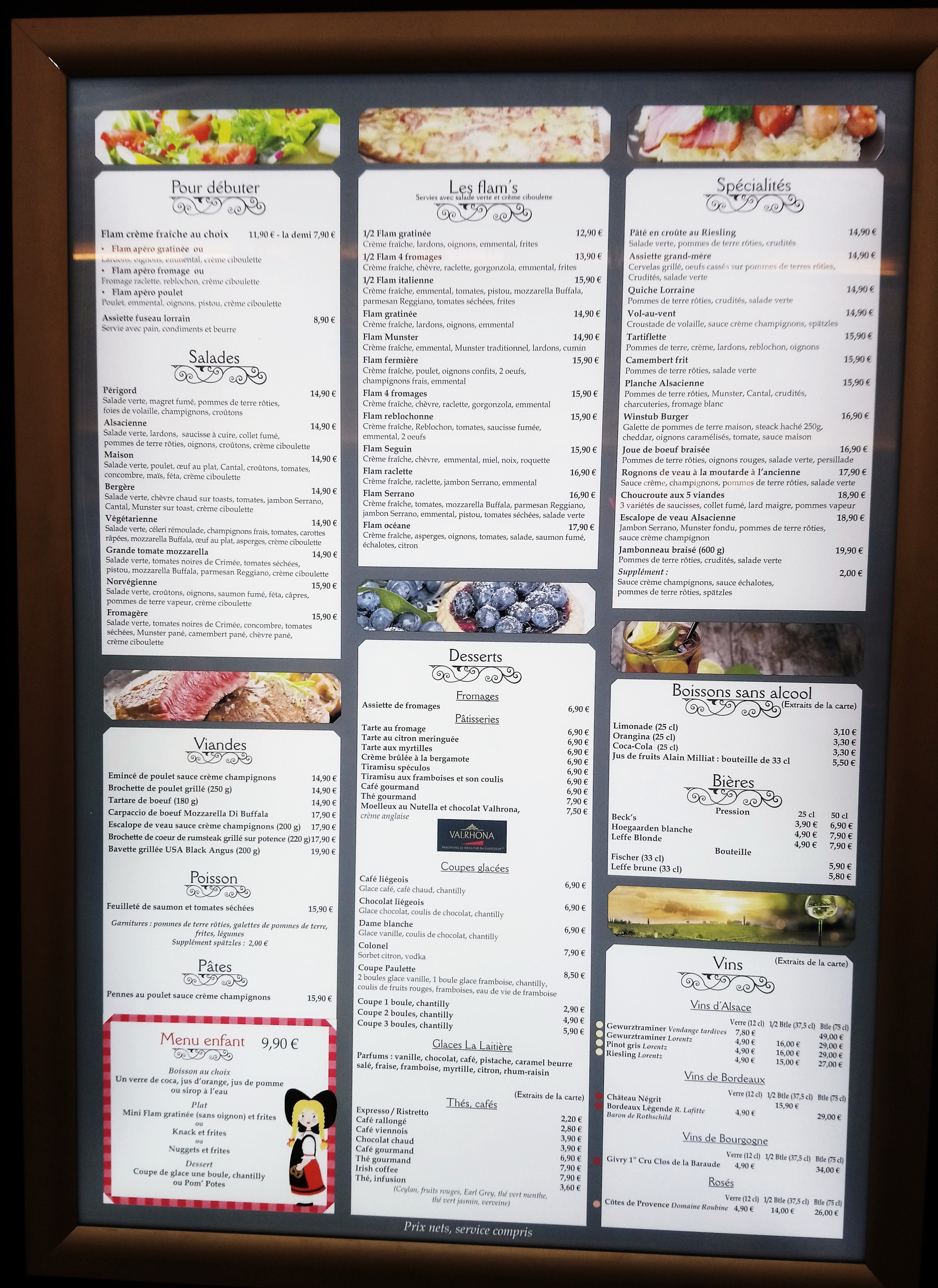 Resto sympa dans un joli cadre interieur .. je viens juste de connaitre ce restaurant et j'ai trouver la carte des menus sympa avec une specialité dans les flamenkuchs maison et aussi bien sur une carte avec des entrées , salades , viandes , pattes ..etc ... les assiettes sont tres bien garni , j' y es tres bien manger et trouver le service rapide et imppeccable , et c'est pour cela que je peux le recommander je pense sans soucis .. ( a essayer !! )
