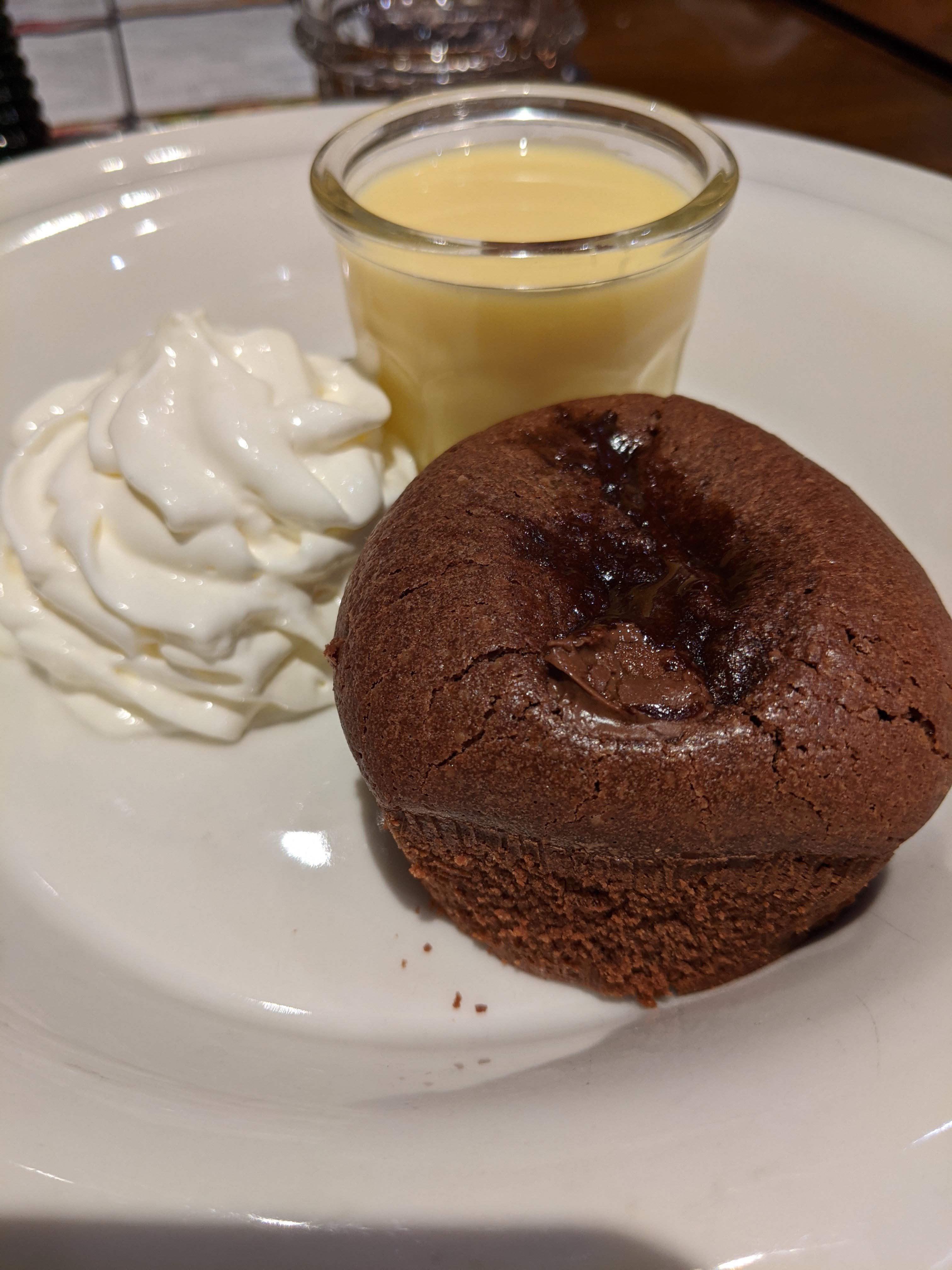 Étonnement surprise... Pour une chaîne C'était très bon, la qualité et la quantité sont au rendez-vous! Le rapport qualité prix est vraiment top pour les produits de choix utilisés (Valrhona, Alain Millat...) La flam était bien faites et bien garnie. Le personnel était vraiment sympathique et font tout pour que le repas soit agréable.