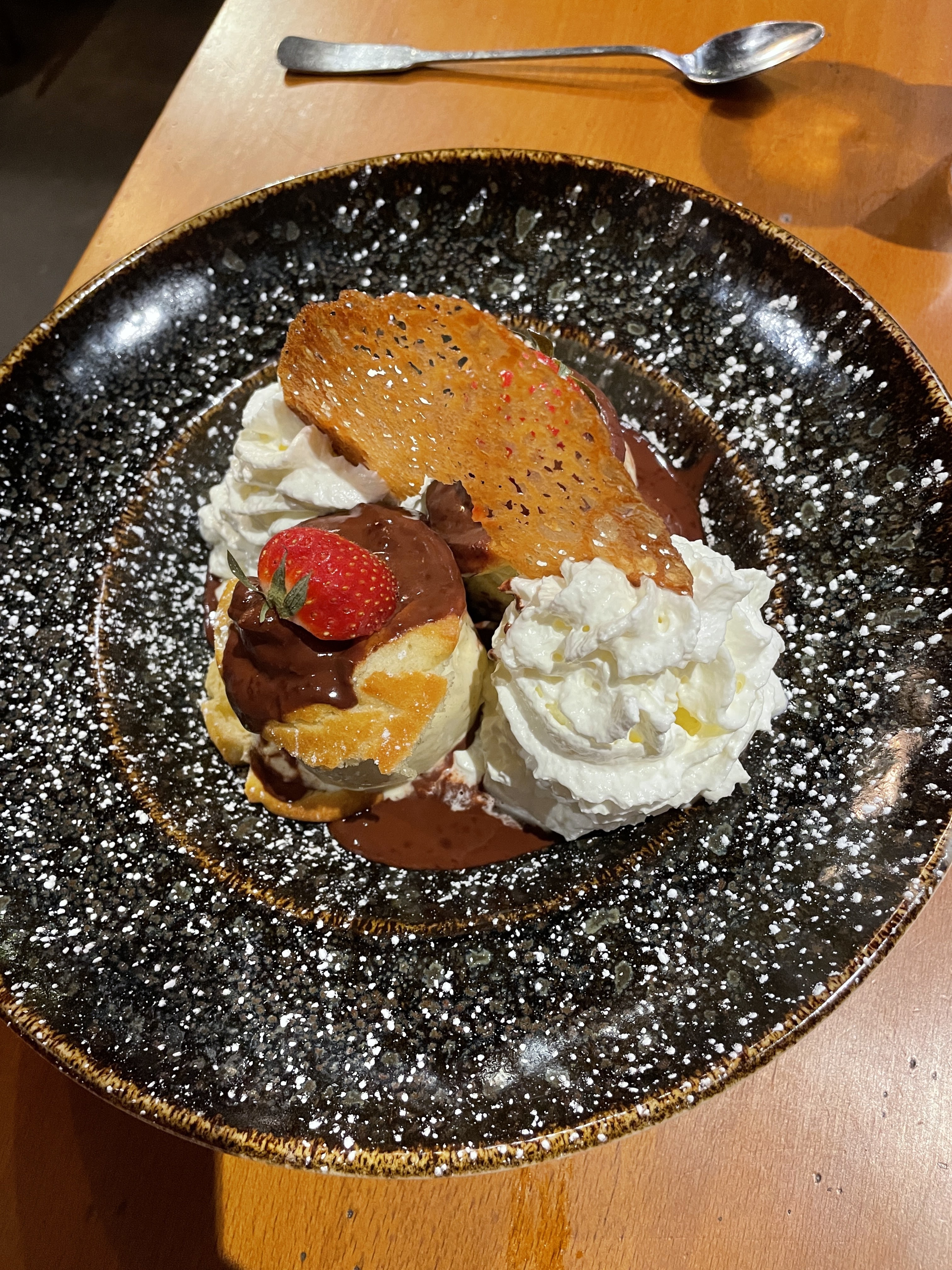 Je recommande les yeux fermés. De l'assiette charcutierie en apéro jusuqu'au dessert, j'ai apprécier. Que l'ont soit une table de 2 ou de 15 le personnel vous accueille avec politesse incroyable. Je comompte bien y retourner 👍👍