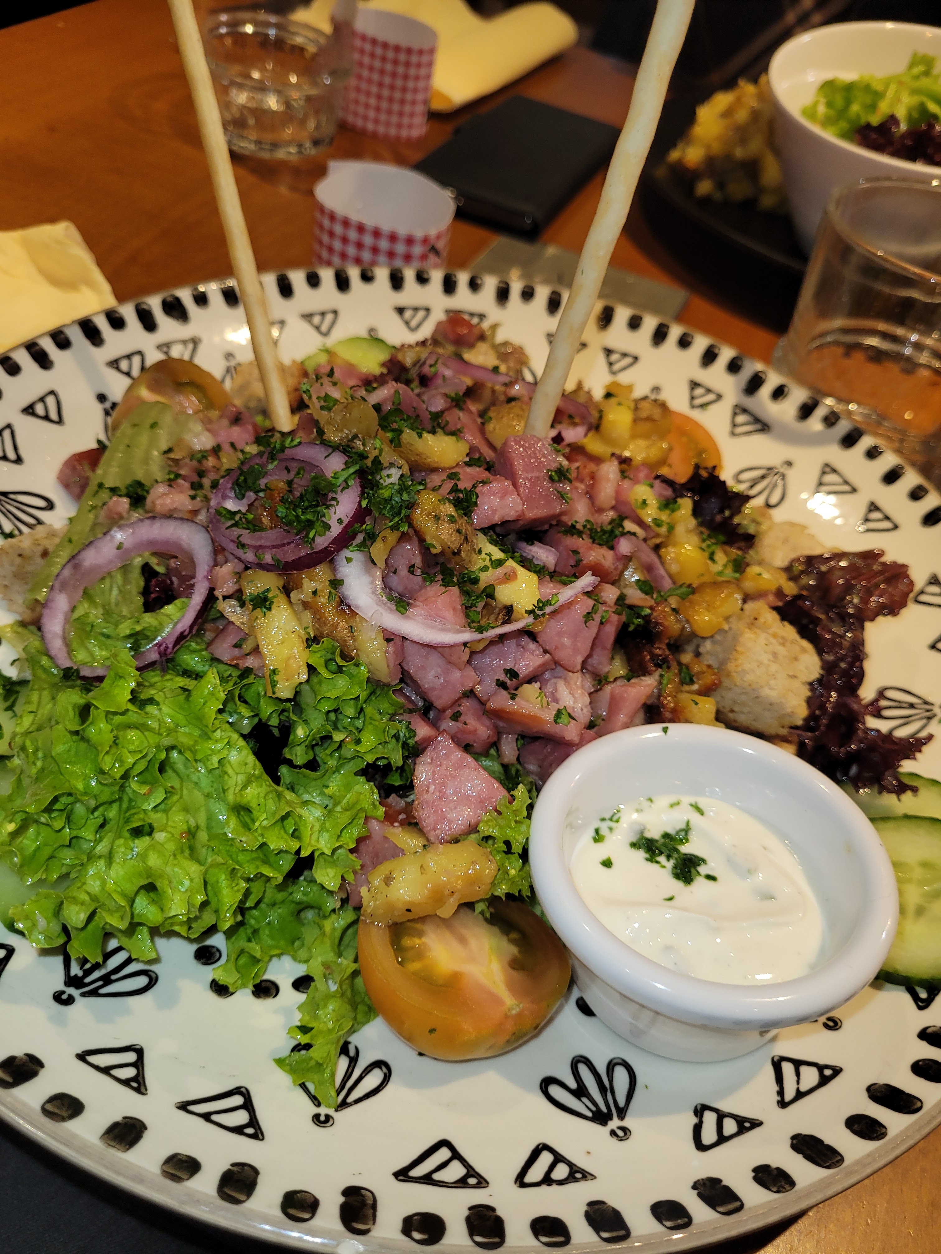Repas gourmand et appétissant. Spécialités alsaciennes mais pas que. Pommes de terre rôties excellentes. Portions généreuses. Personnel compétent et souriant. Nous reviendrons. A bientôt
