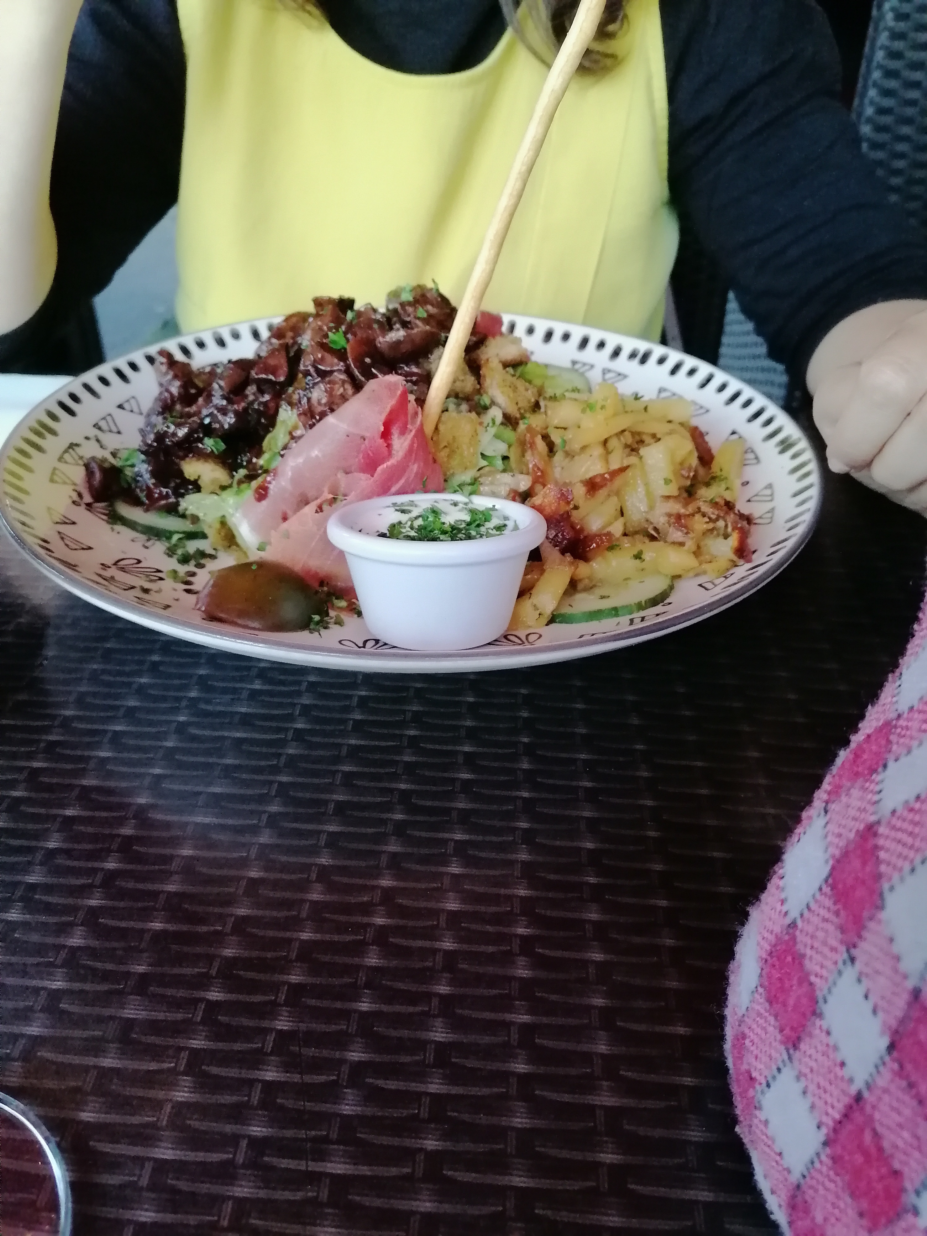 Un moment apprécié en famille arrivé a 13h45 sans problème on t´accueille même plus tard apparement. Des râpés de patates d´une excellence incroyable, pareil pour les patates rôties maison. Même la salade qui accompagne est terriblement bonne. Une sauce echalotte maison au vin mummmmmm trop bon. Je recommande clairement ce resto Meme le café gourmand est top 😁😊