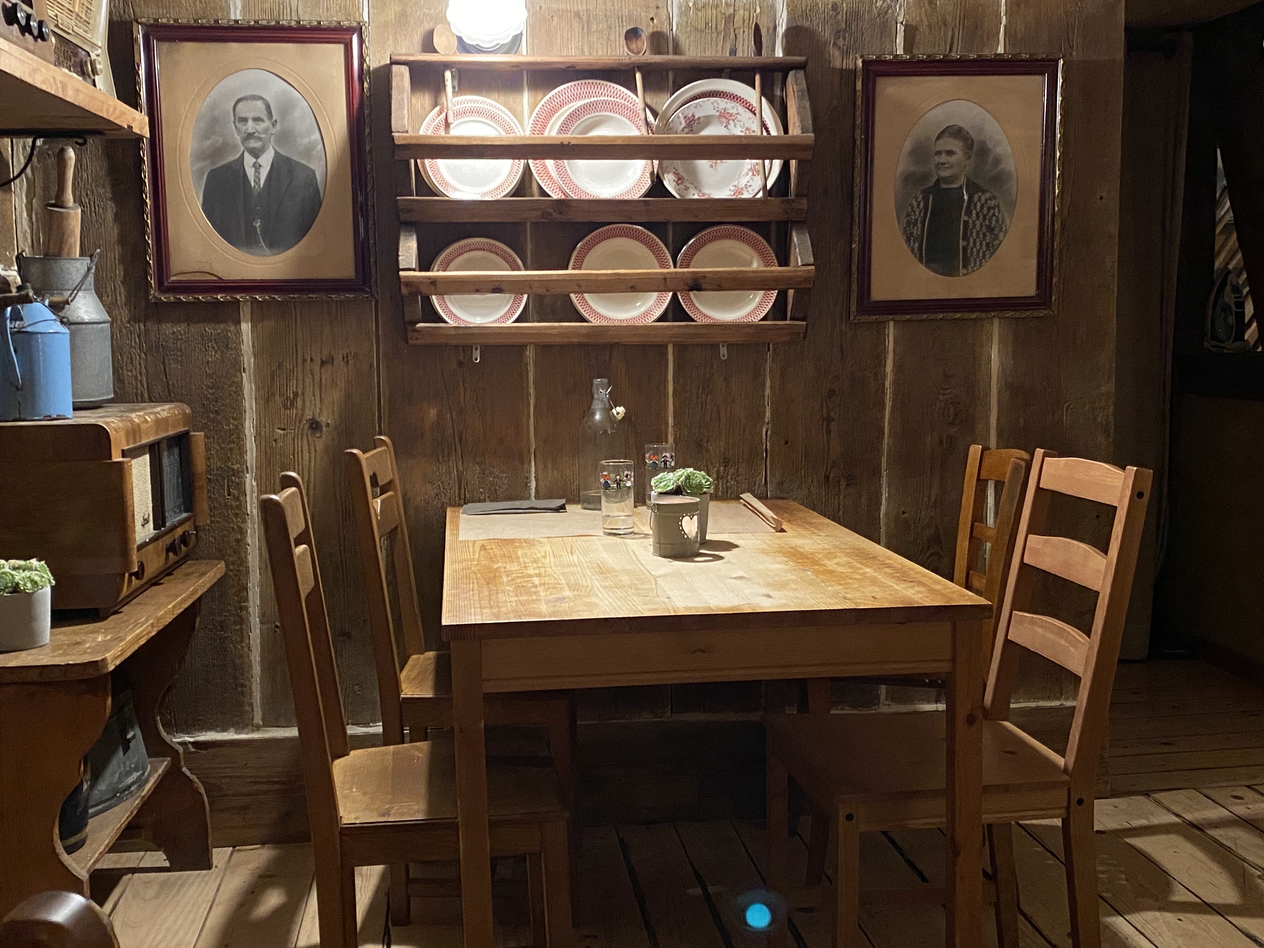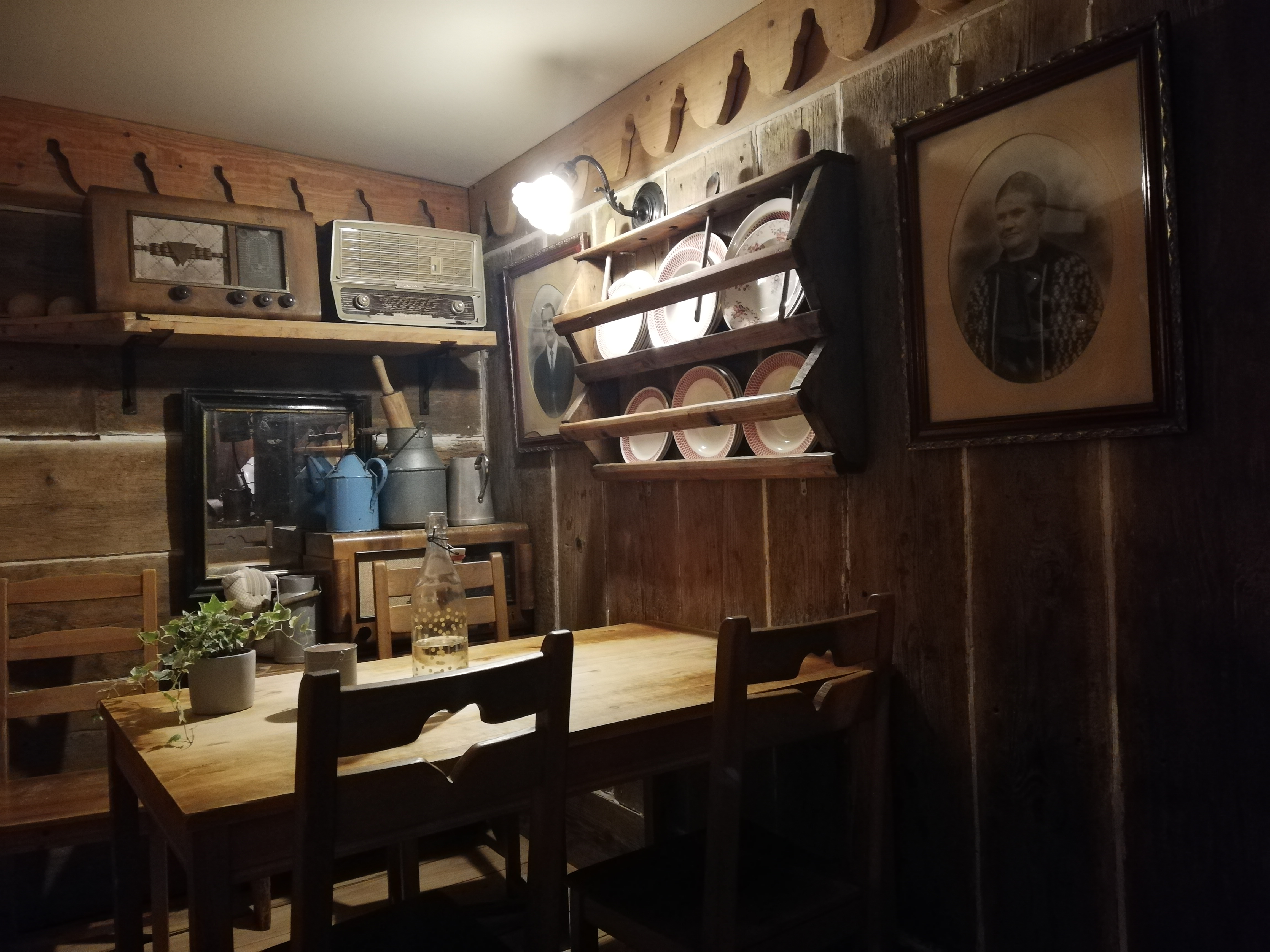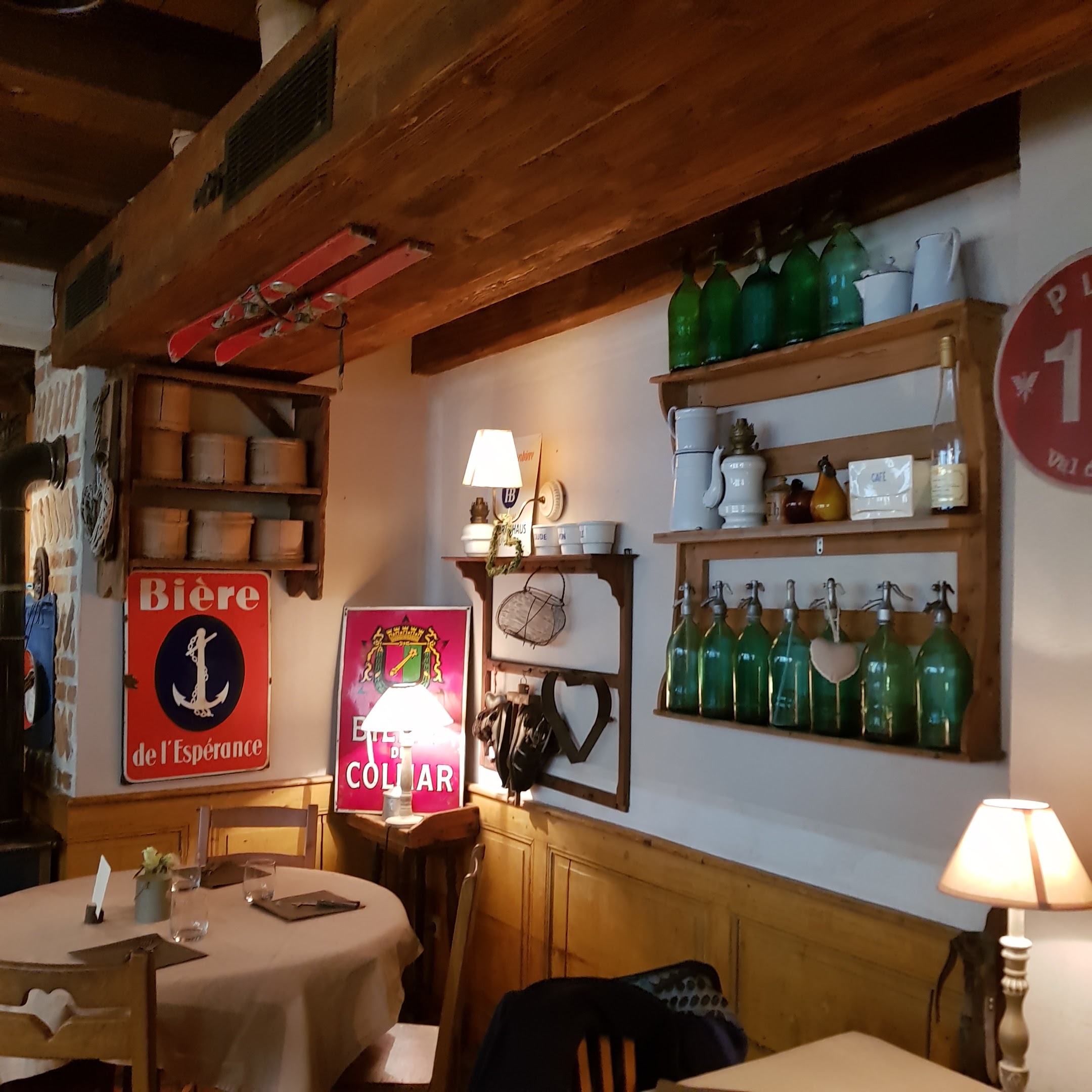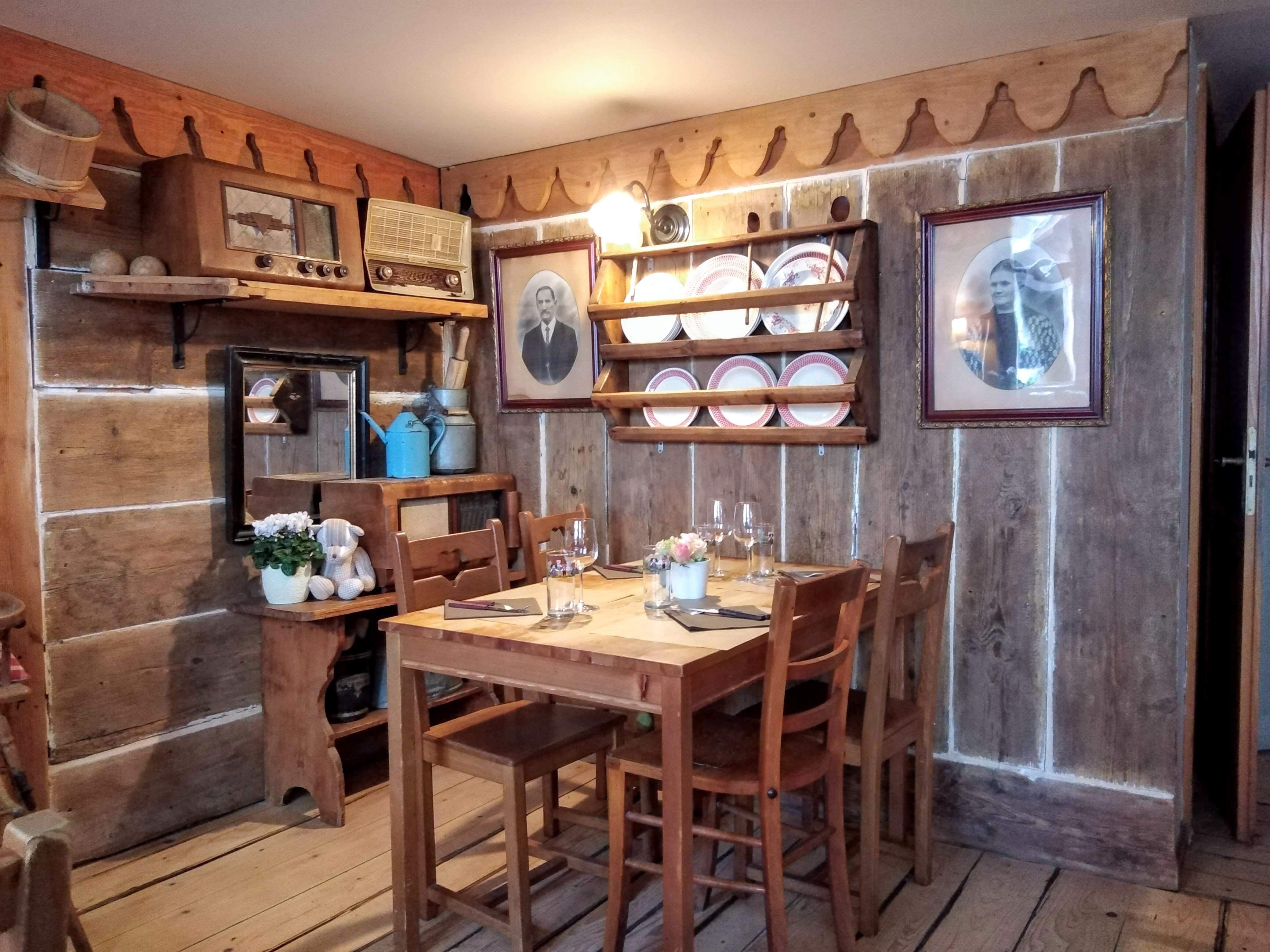 Décor atypique d’objets ancien. Cuisine de plats de la région sont excellents, serveuse sympathique et à l’écoute !