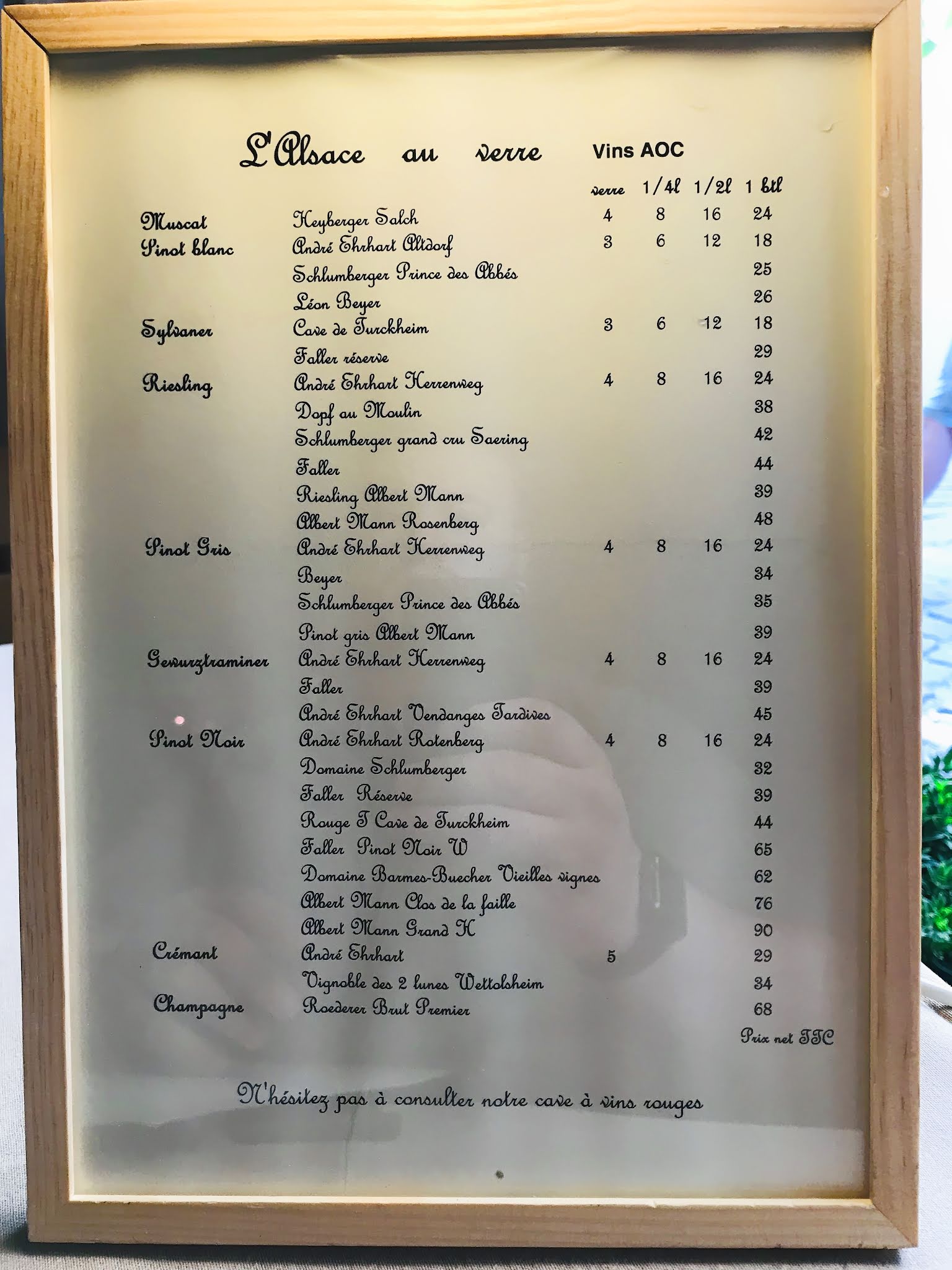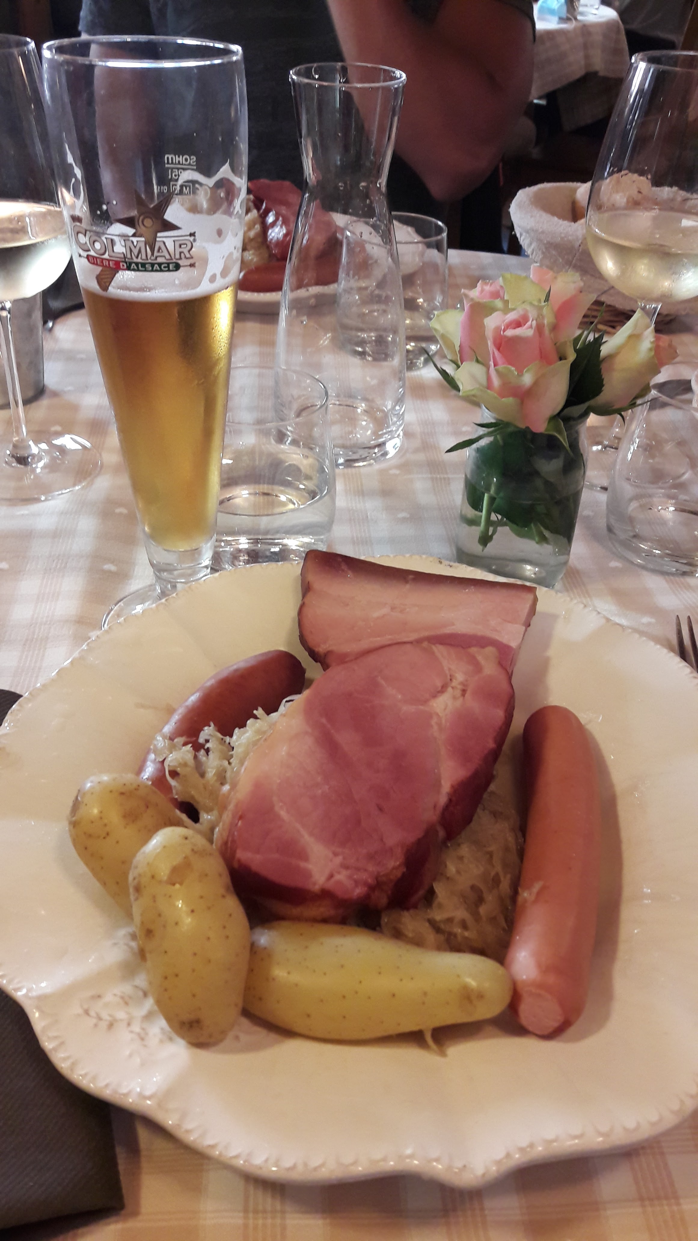 Ambiance très sympathique avec un service très agréable avec différents accents qui nous fait bien sentir que nous sommes en Alsace. Le repas agréable avec en prime une explication sur tout les plats qui en demandaient une. Un choix intéressant de vins mais la par contre avec une attention particulière sur le prix. En bref un bon déjeuner dans un cadre agréable.