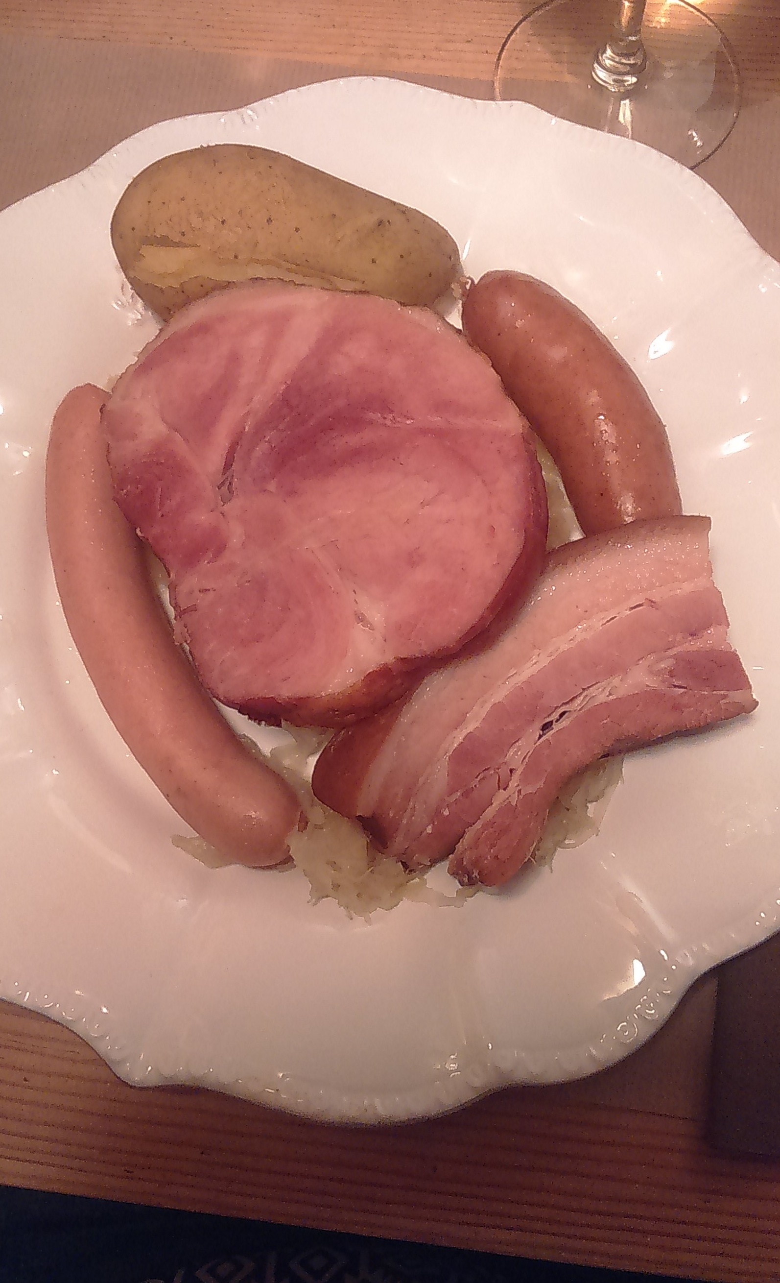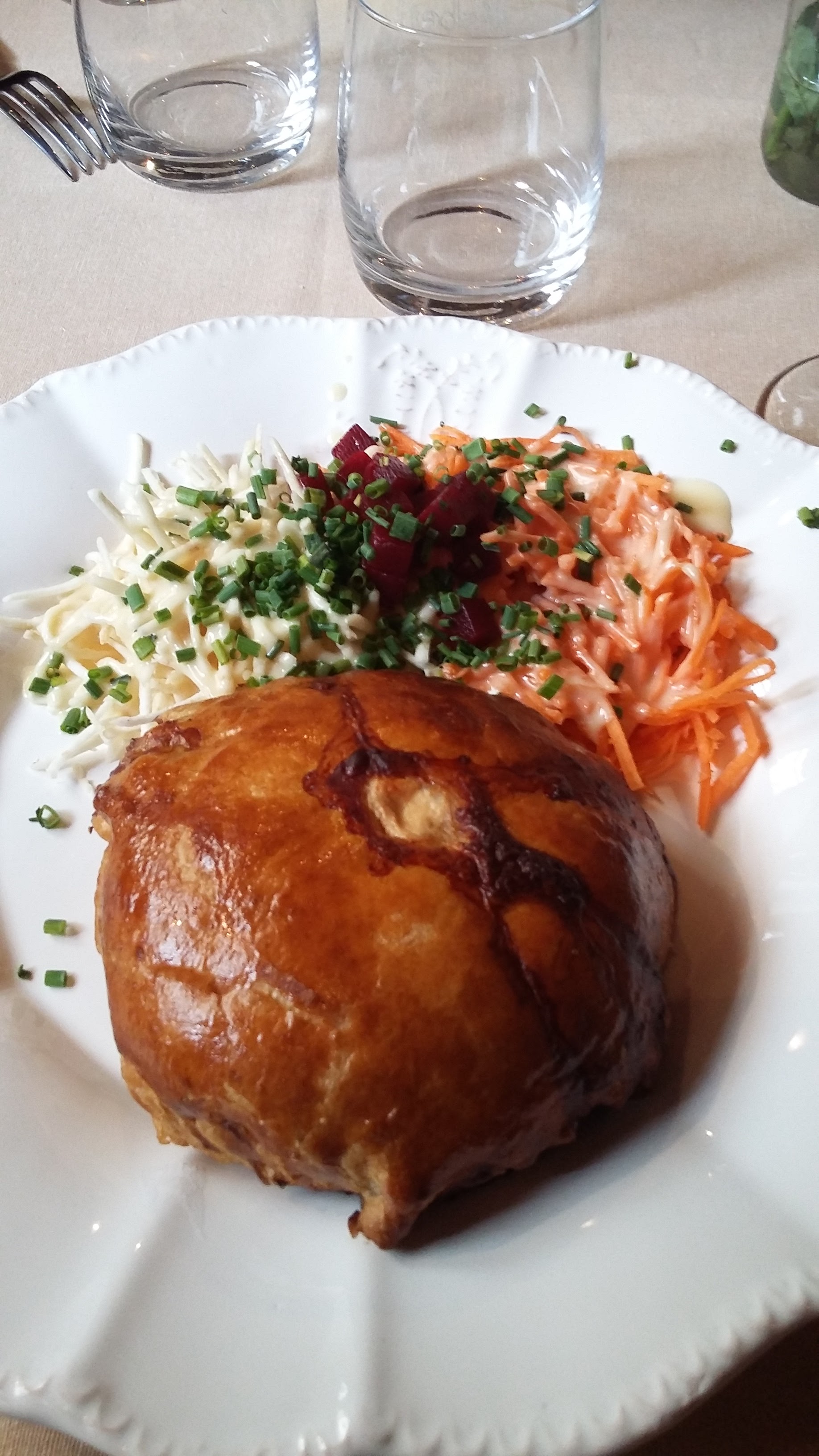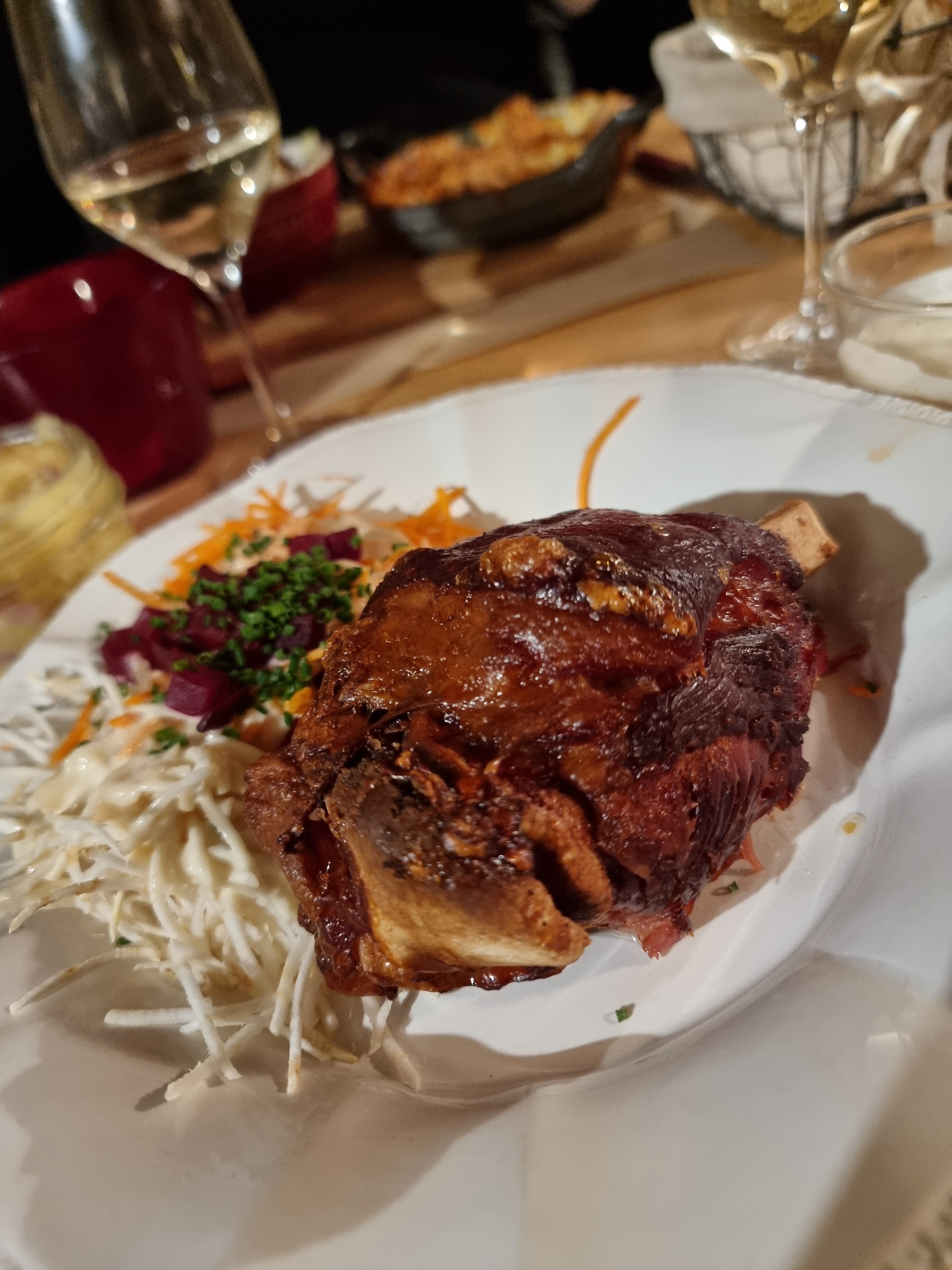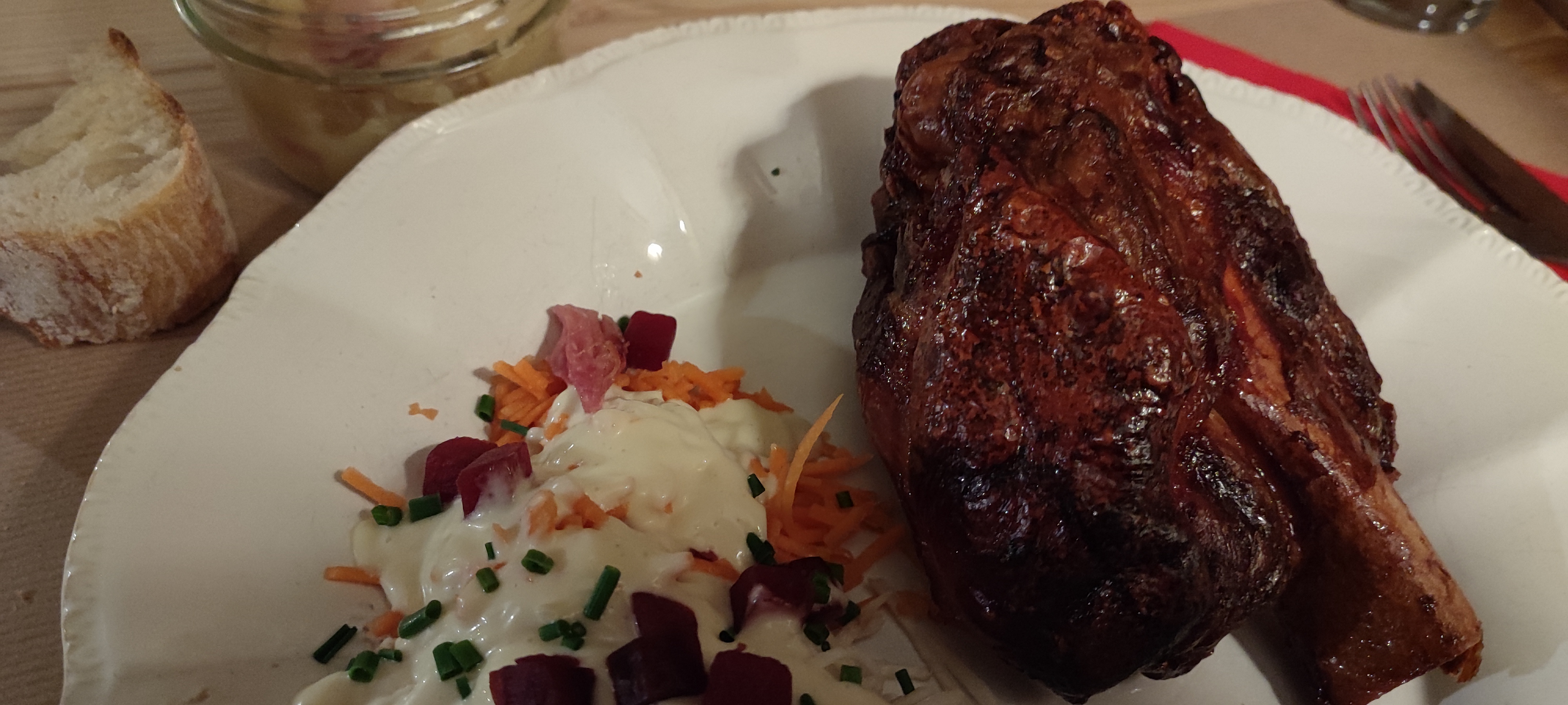 Personnel souriant et sympathique, le jambonneau braisé, pommes de terre, céleri, carottes sauce raifort très bon, nous avons bien mangé.