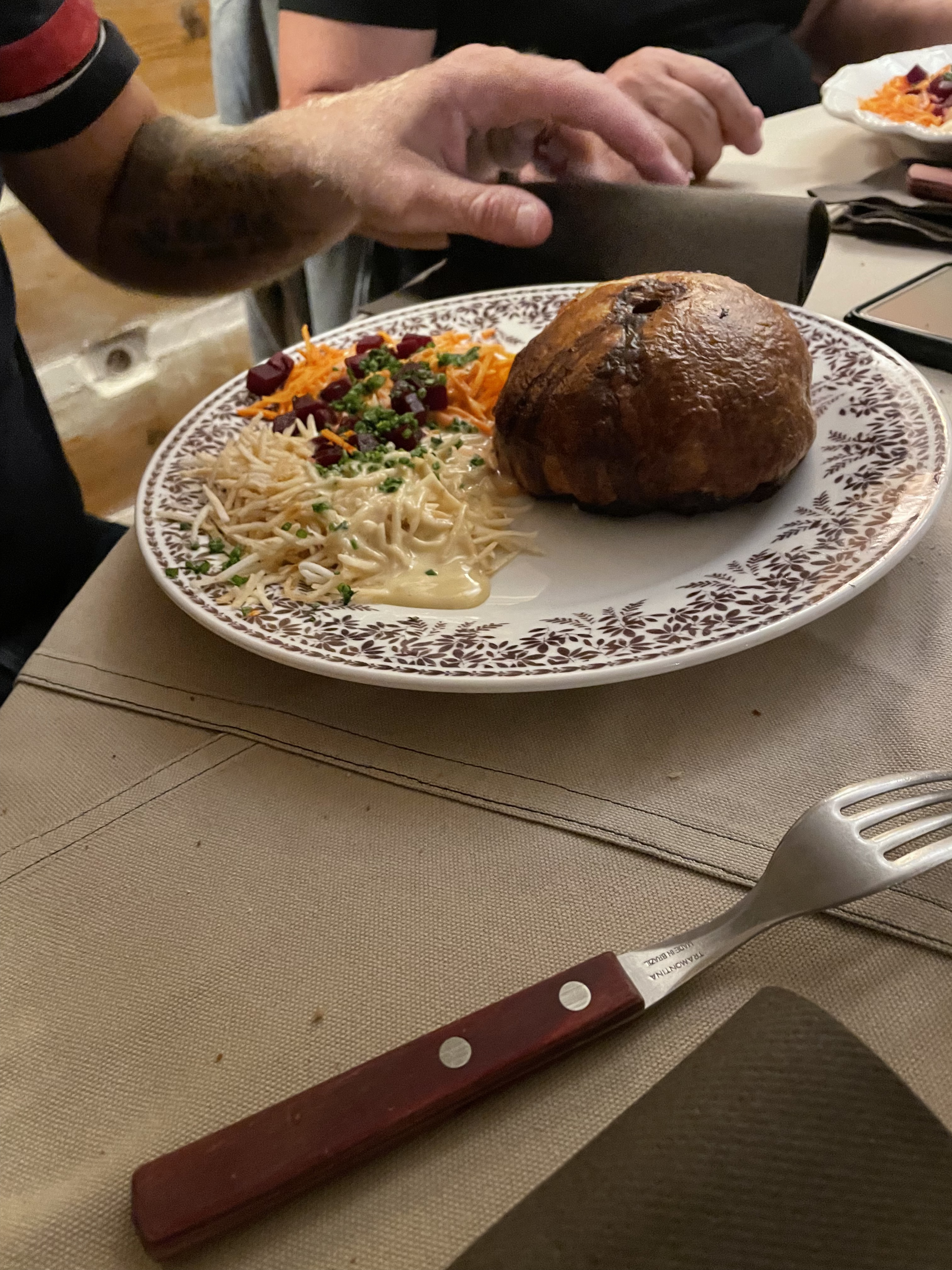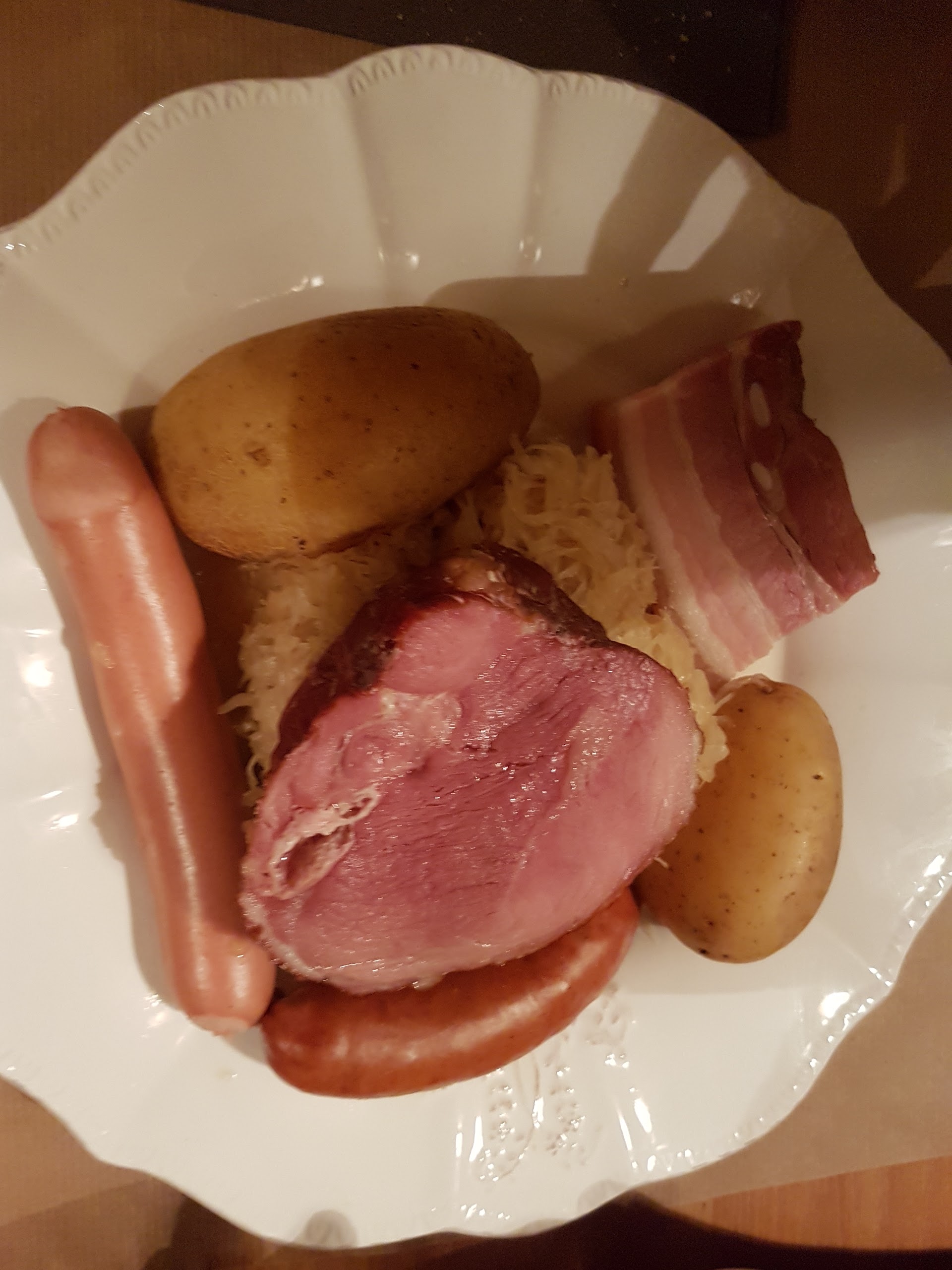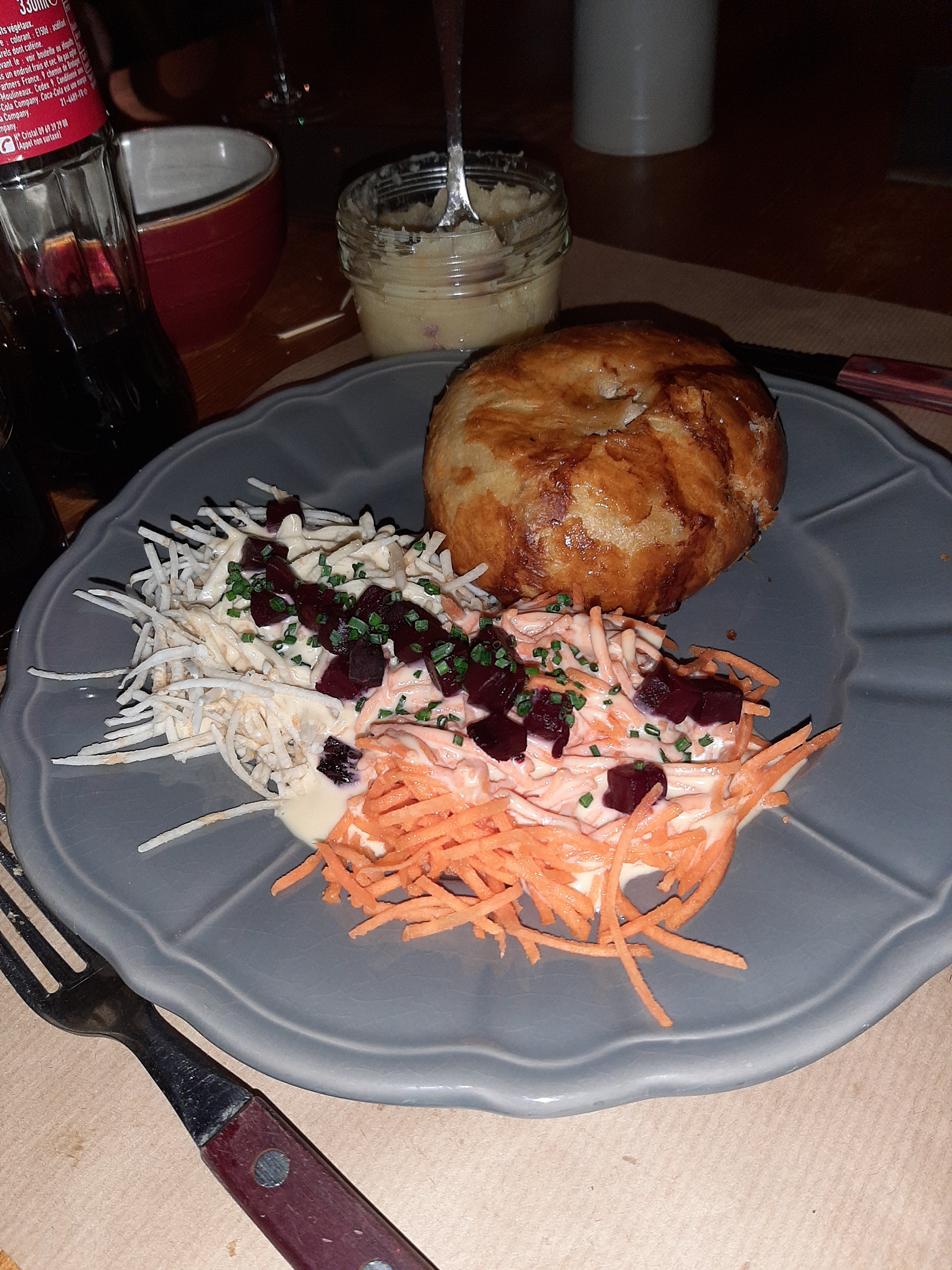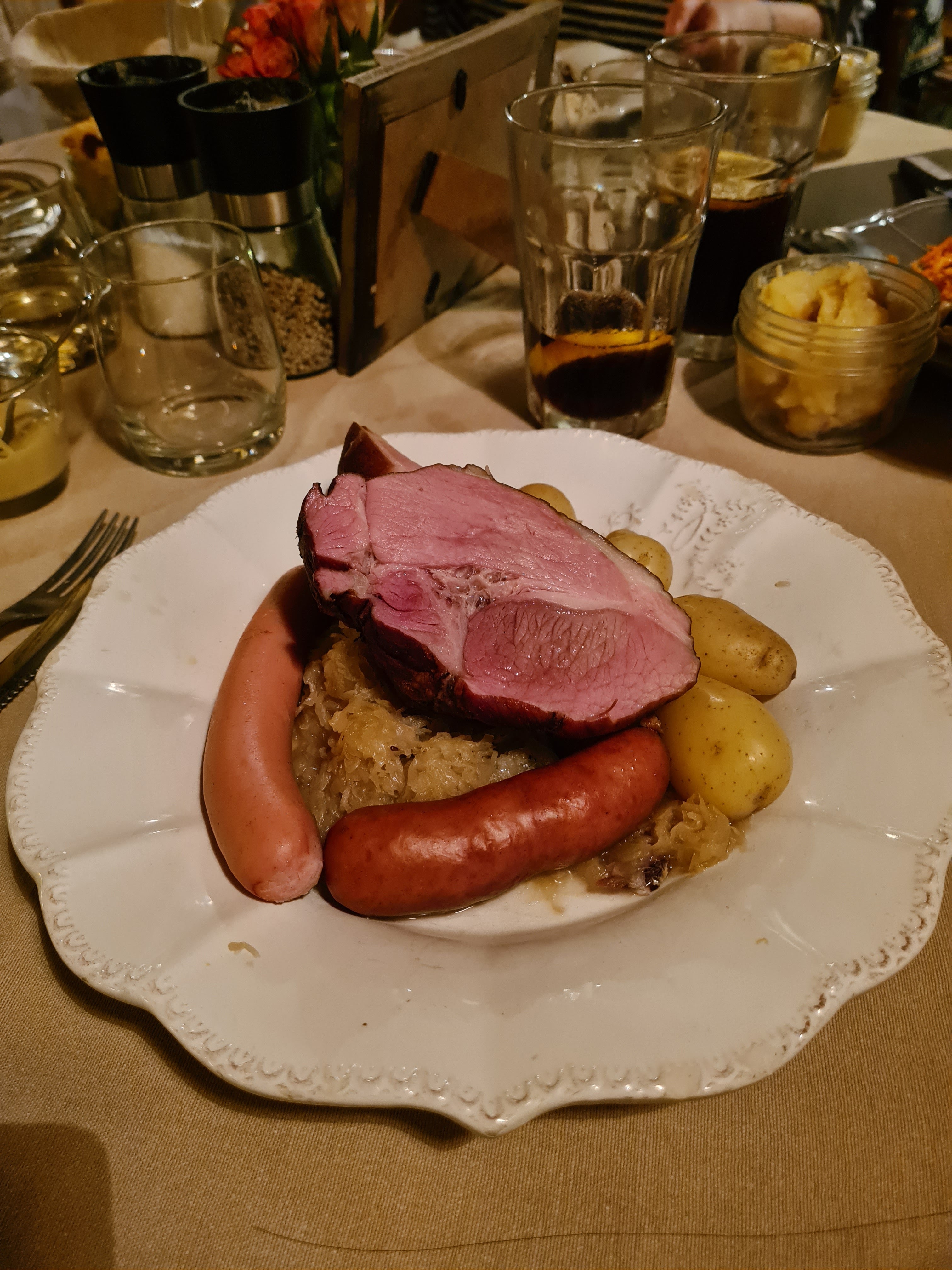 Personnel souriant et sympathique, le jambonneau braisé, pommes de terre, céleri, carottes sauce raifort très bon, nous avons bien mangé.