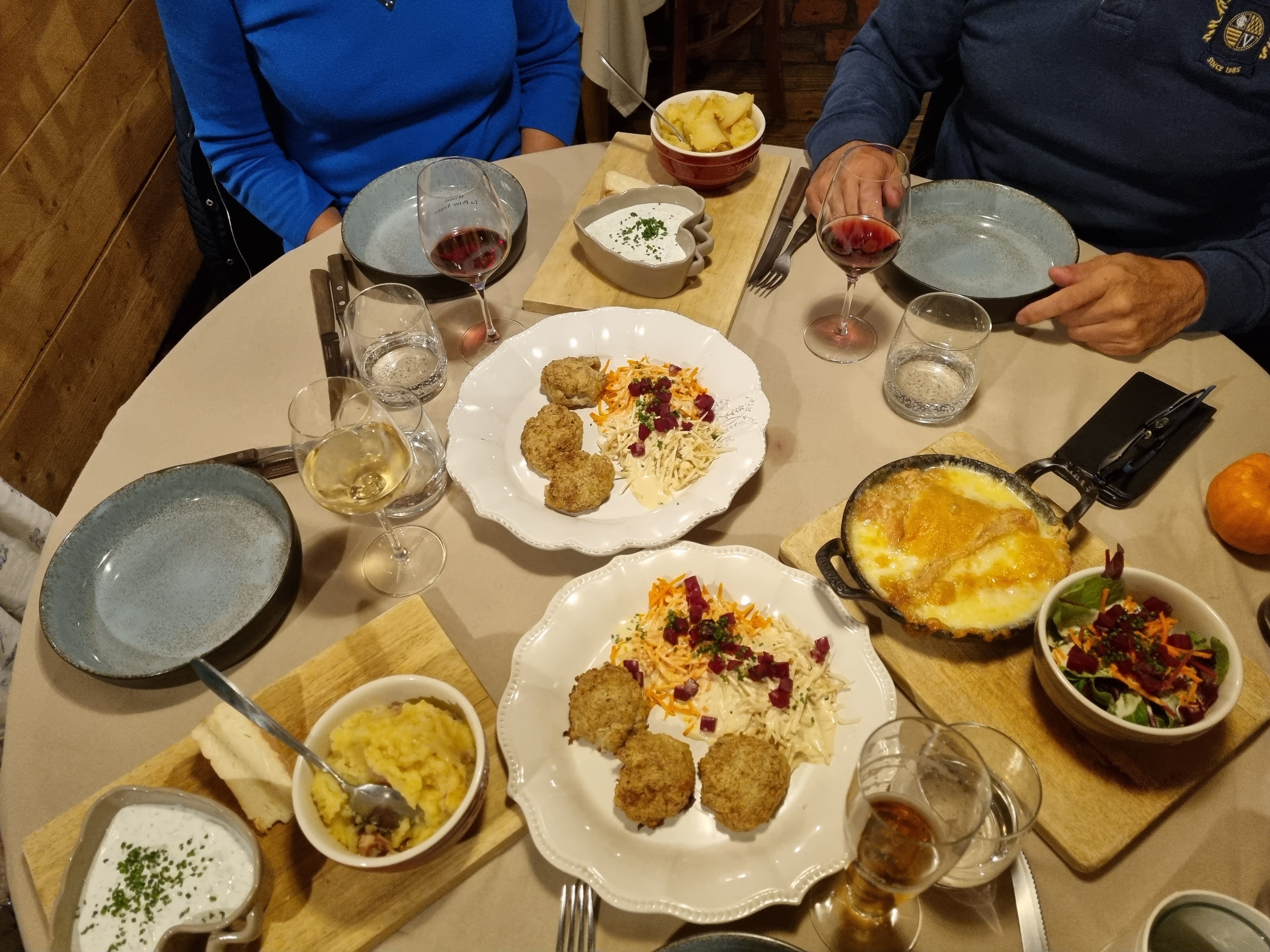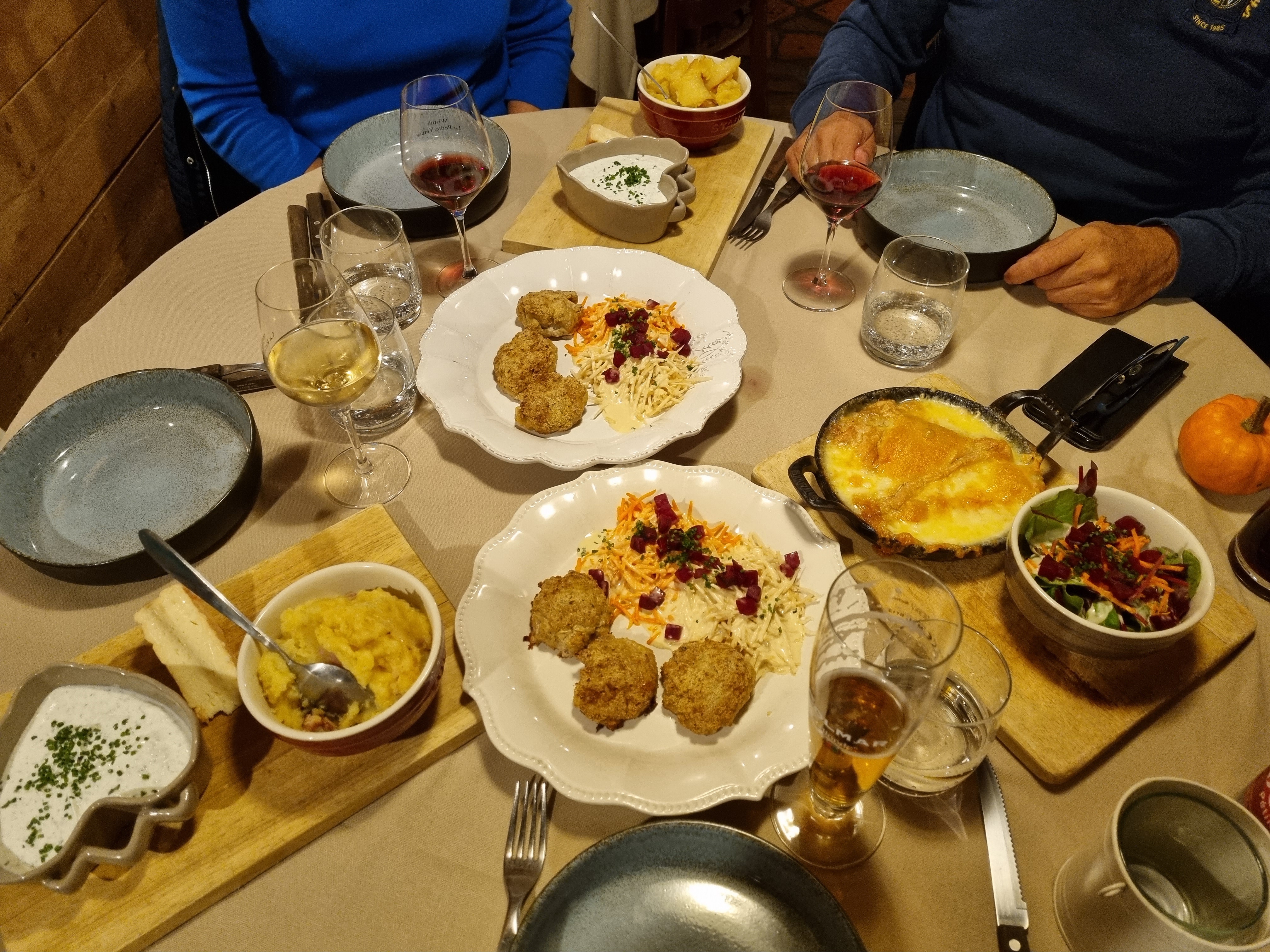 Nous recommandons pour un repas copieux accompagné par un vin blanc idéal pour les plats commandés, service simpatique, juste le service un petit peu rapide. Rapports qualité prix très corrects.