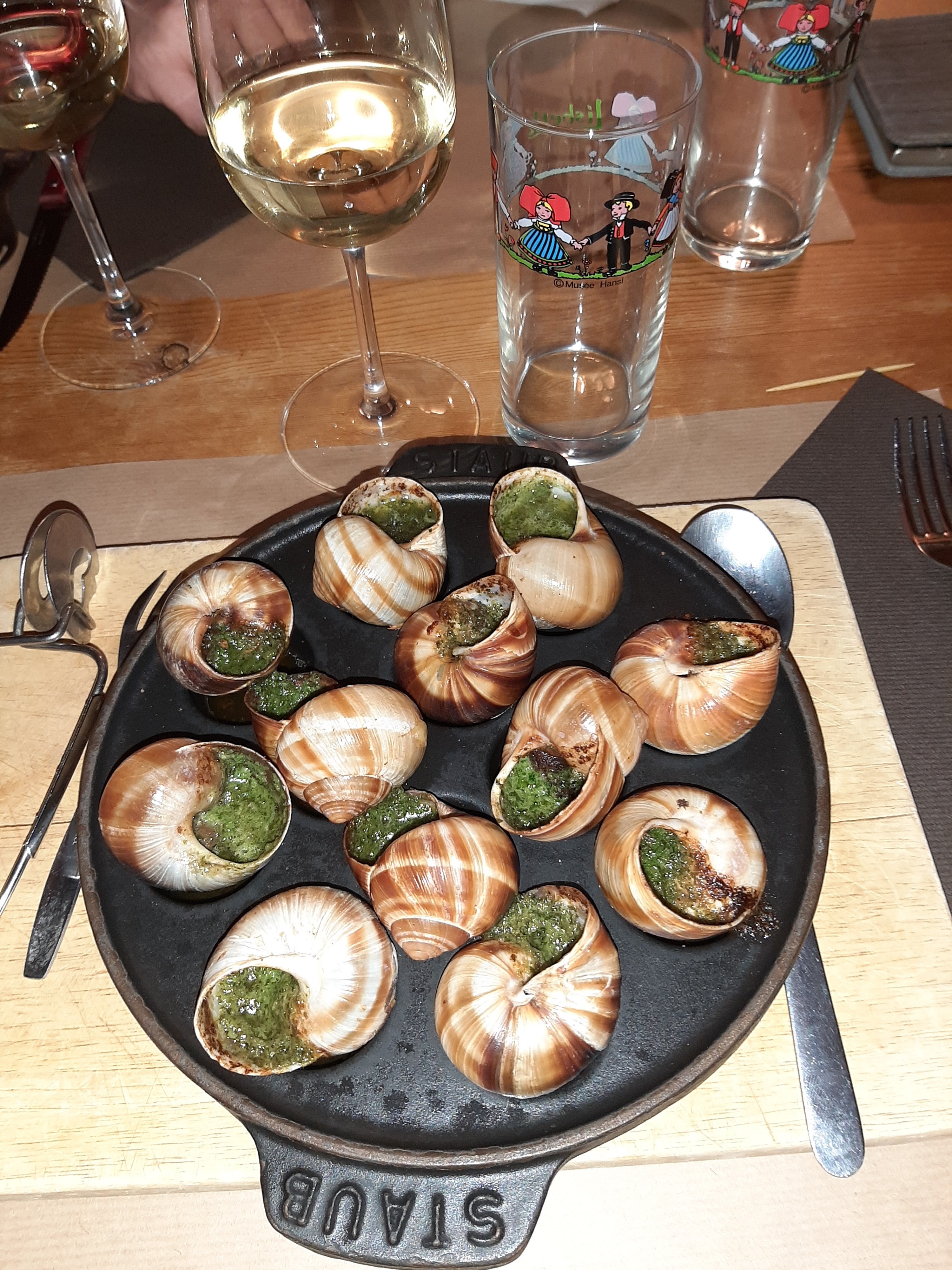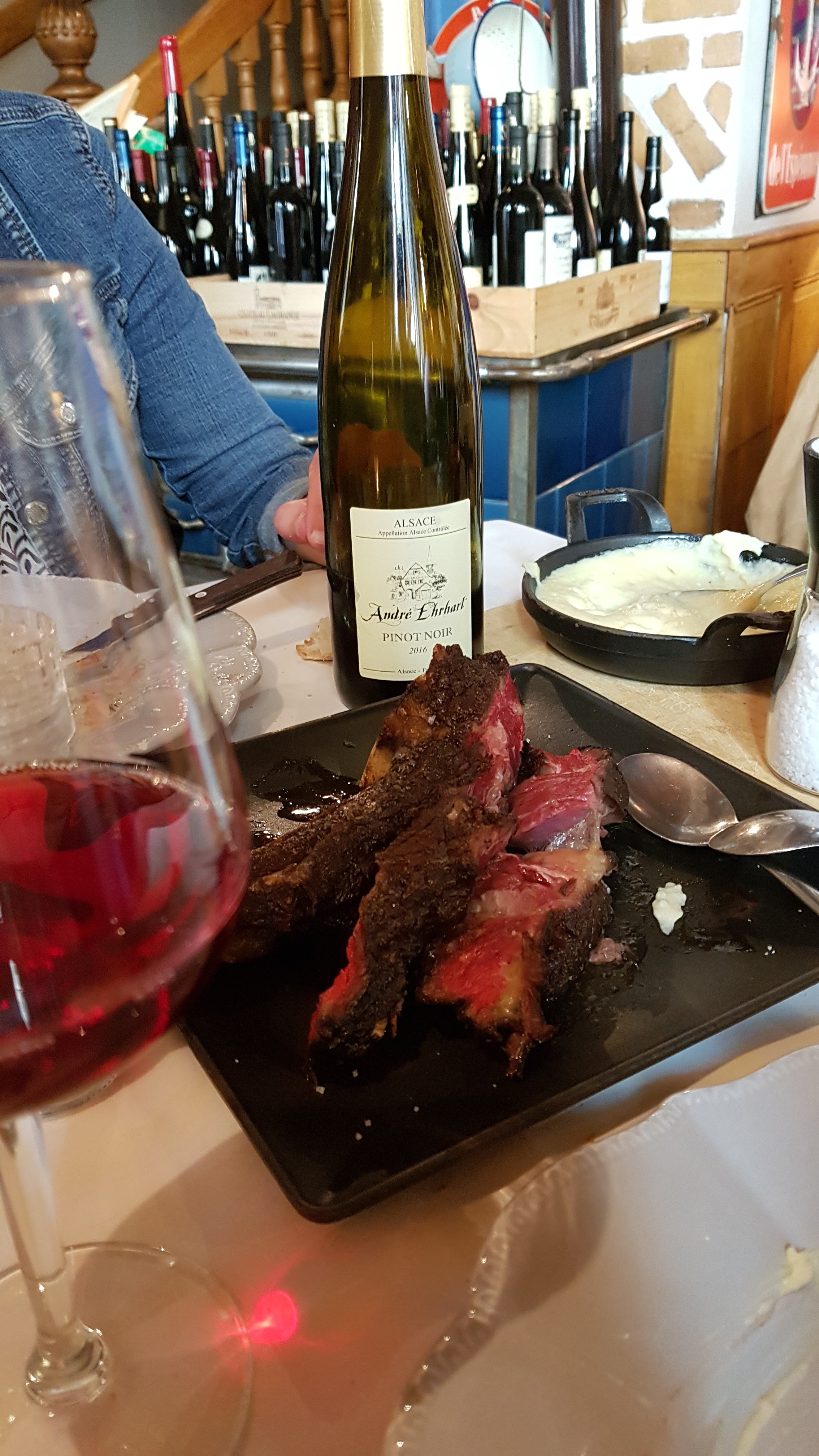 Cusine alsacienne correcte; 1 repas sur 3 est plutôt valable en terme de prix... ca fait une addition salé pour ce qu'on a mangé.... 18€ pour 3 escargot de viande Ou 17€ pour une petite bolinette de pomme de terre écrasé avec un bol de fromage blanc à l'ail et à la ciboulettes. Et un petit bout de munster de grande surface.... C'est chère payé je trouve. Le cadre et l'emplacement sont bien mais pas en bord de rivière non plus comme certains autres établissements peuvent le pretendre. Un service correcte ....ou la nappe s'est vitre transformé en champs de bataille car le vin est servi à la vas vite ..... nous devons aller chercher le seau à champagne de glace ou la bouteille de pinot à été entreposé avec dautres bouteilles sur la table de service, cela faisant suite à notre demande de mettre le vin au frais car beucoup trop chaud.