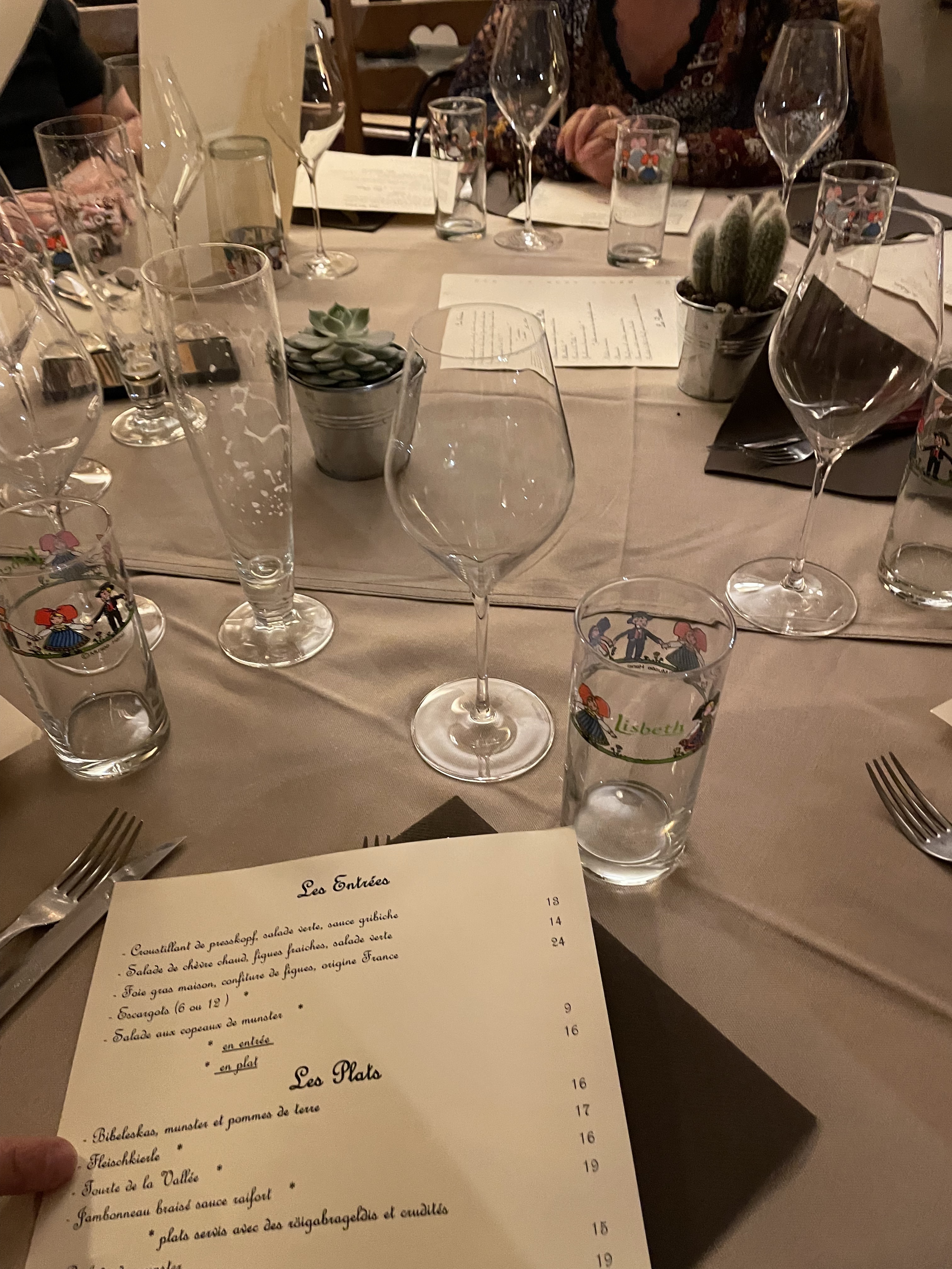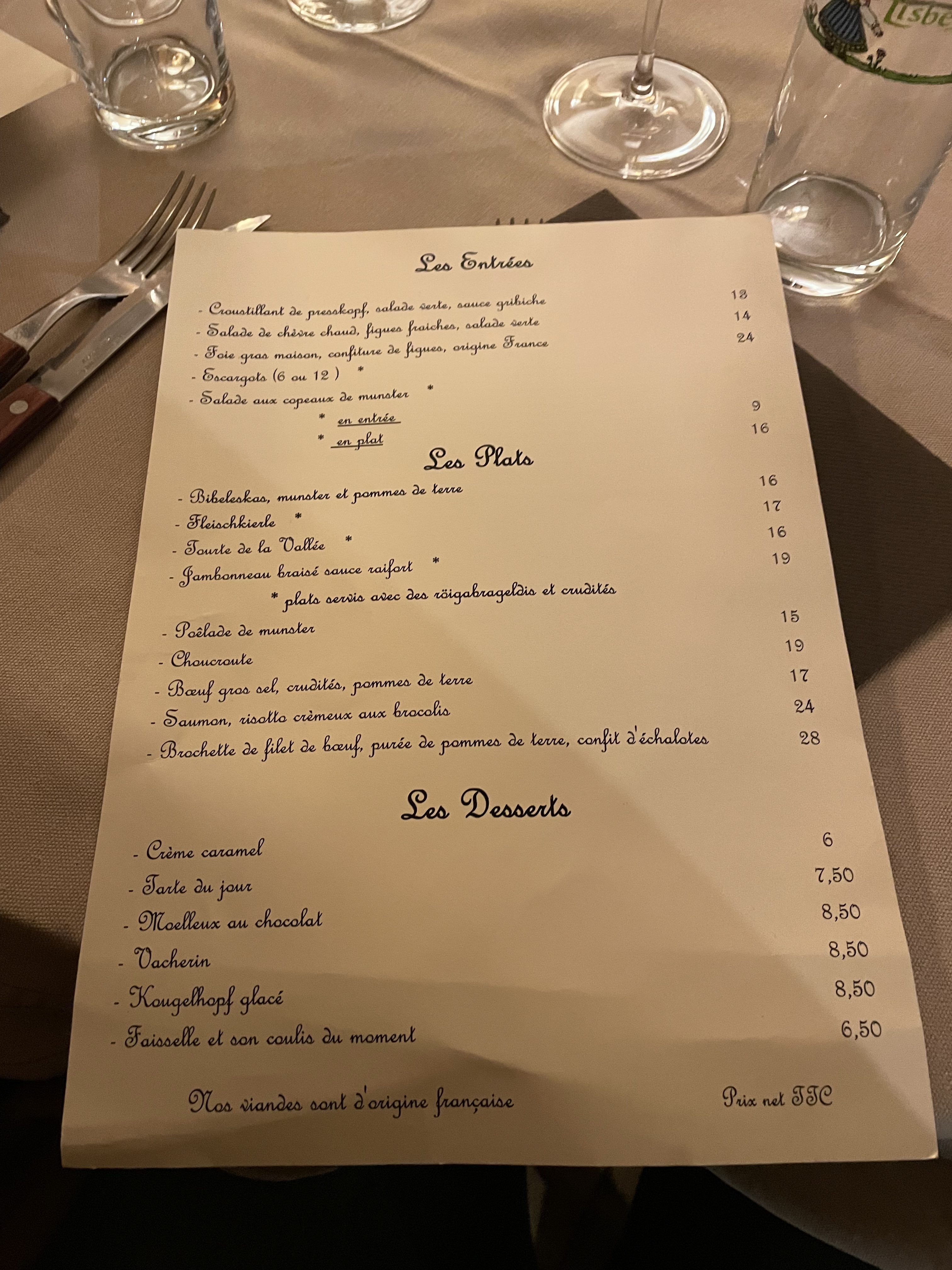 Nous y avons mangé le soir pendants nôtres séjour à Colmar pour le célèbre marché de Noël . La gastronomie était très bien . C’était dès menu avec plusieurs choix . J’ai pris des escargots avec un jarret de porc très bien fourni, cuisson parfaites. Goût au rendez-vous. Ma compagne a pris une poêler munster. Tout étais bon ! Quantité très suffisante pour un être humain peut-être pas pour les aliens 😝 . Merci pour le service avec 2 jeunes personnes adorables à l’étage . Je recommande et j’y retournerai par leurs gastronomie et leurs sympathie