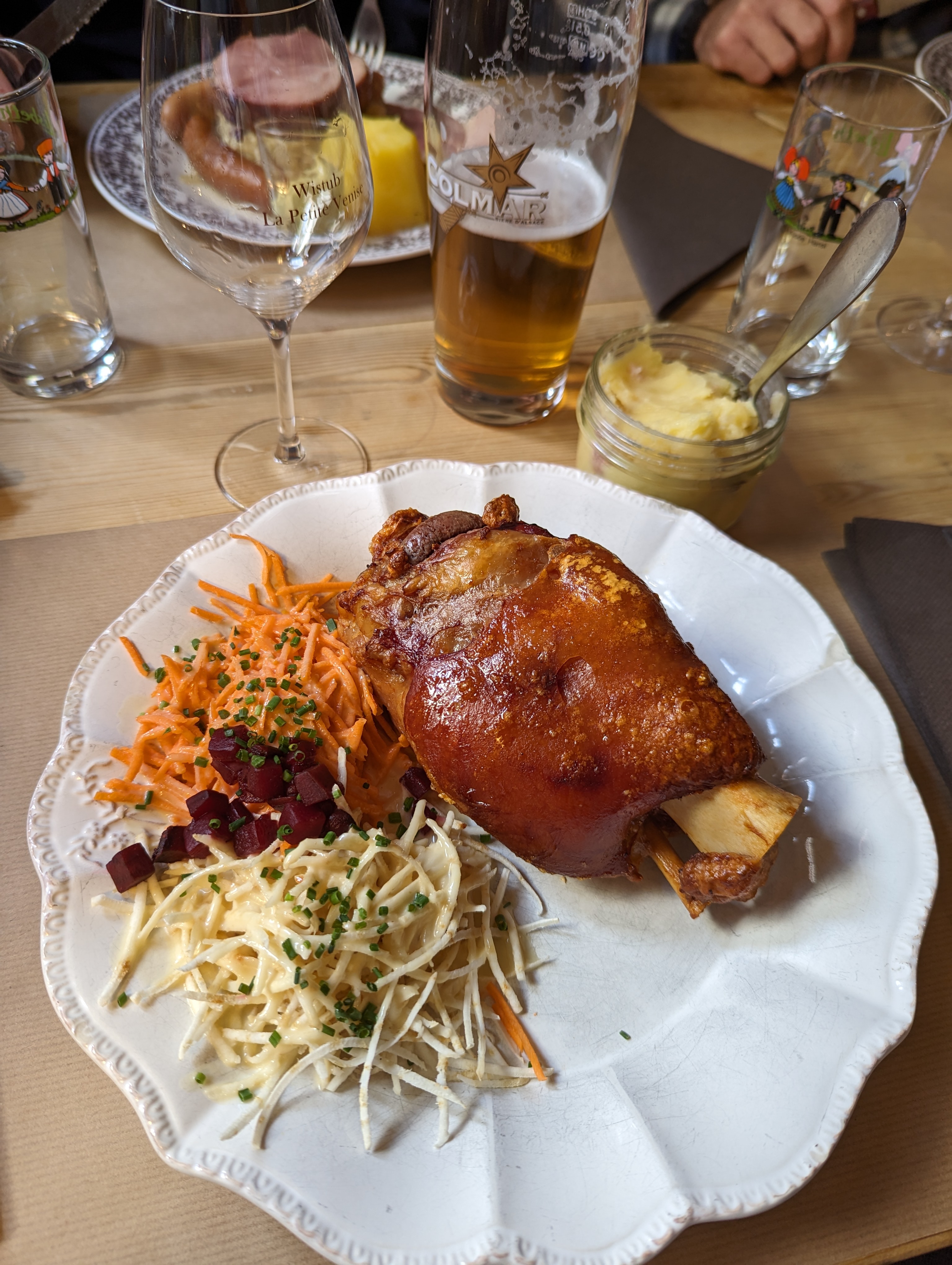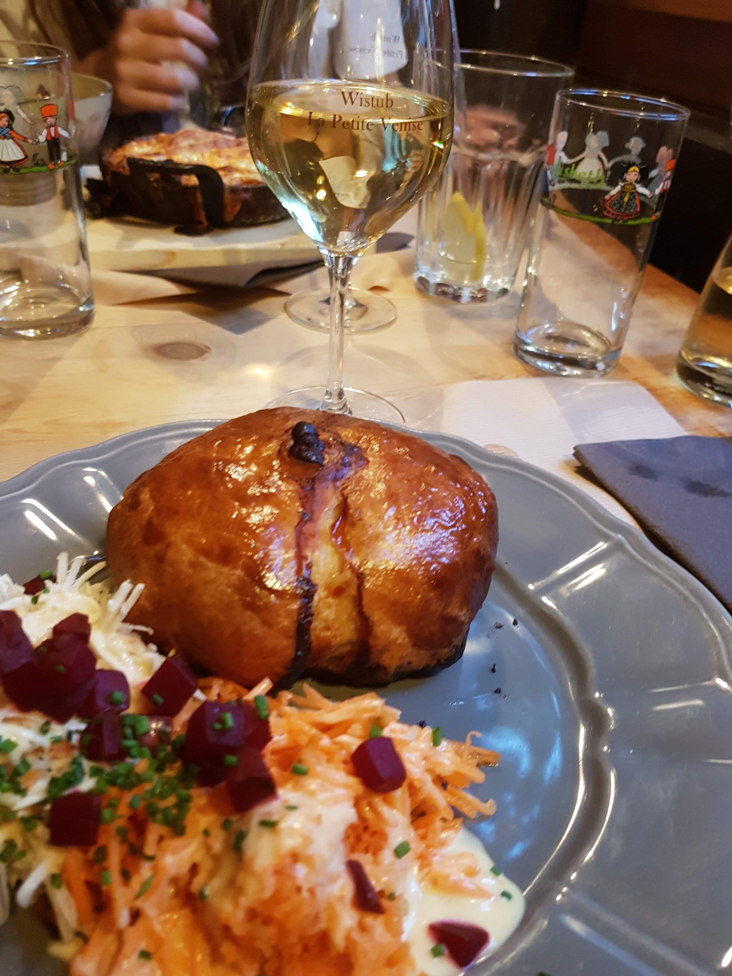 Jambonneau braisé excellent !!! Winstub typique d’Alsace où vous pourrez y déguster toutes les spécialités du coin. Attention malgré tout, le soir, vous êtes obligés de choisir les plats du menu ( pas de choix à la carte …). Cela ne nous a pas empêché de nous régaler. Vous pouvez y aller les yeux fermés.