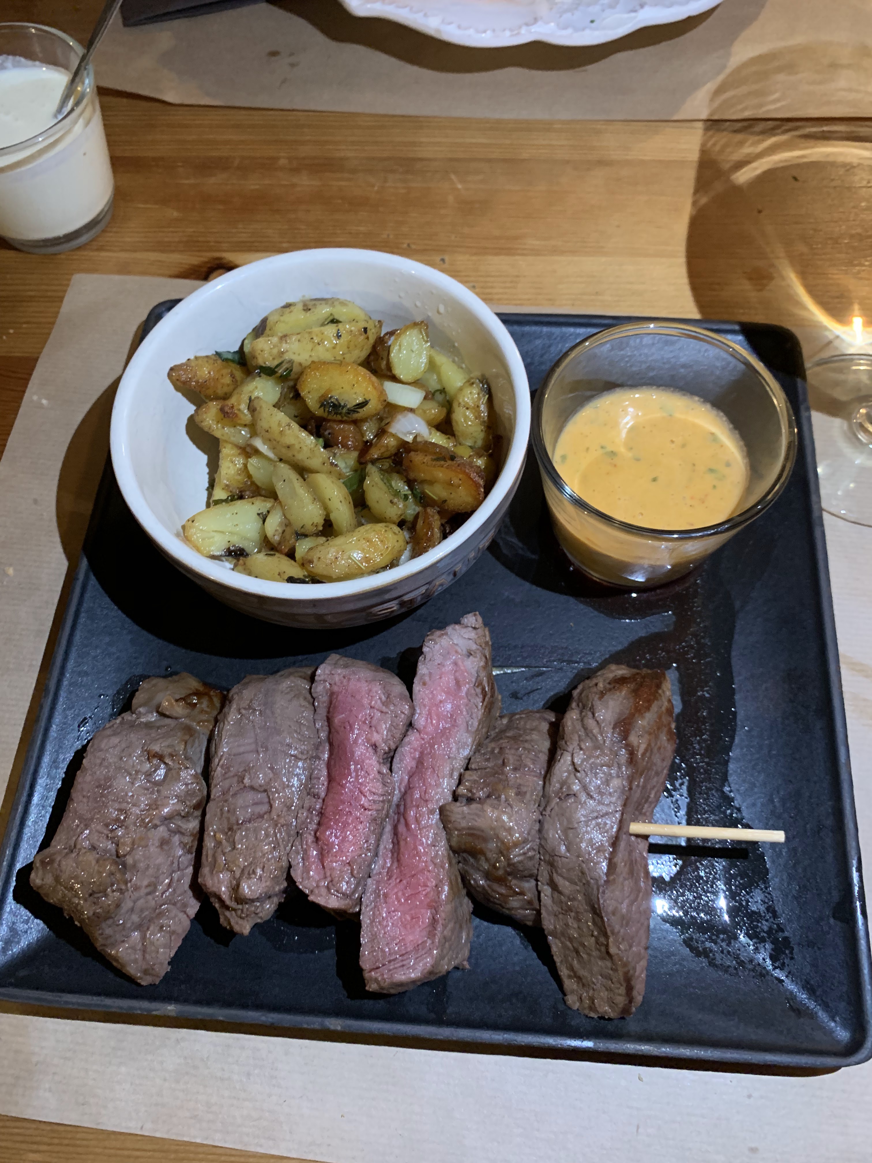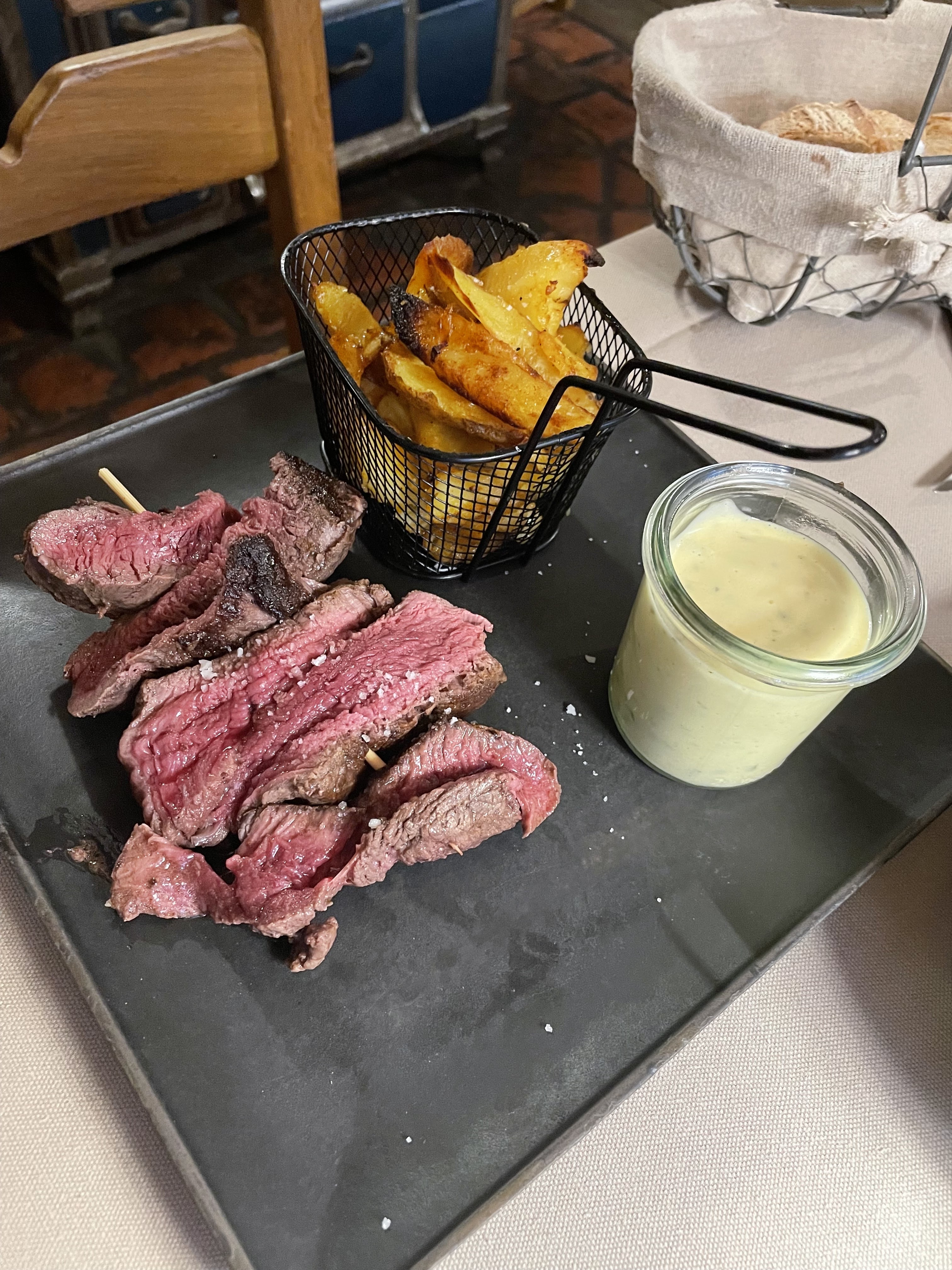 Très bonne côte de boeuf black angus Petite sauce morilles Et service avec le sourire Bonne maison