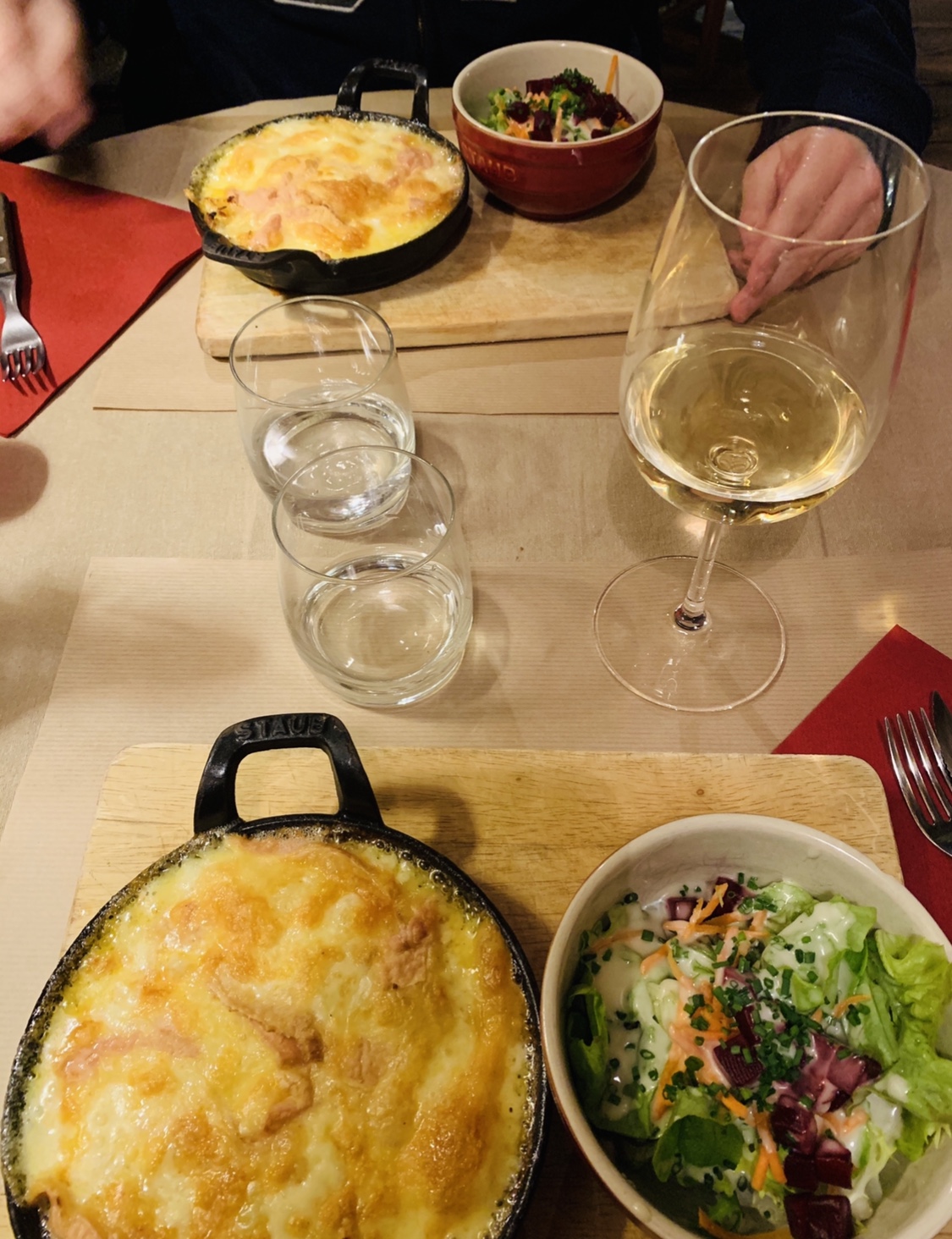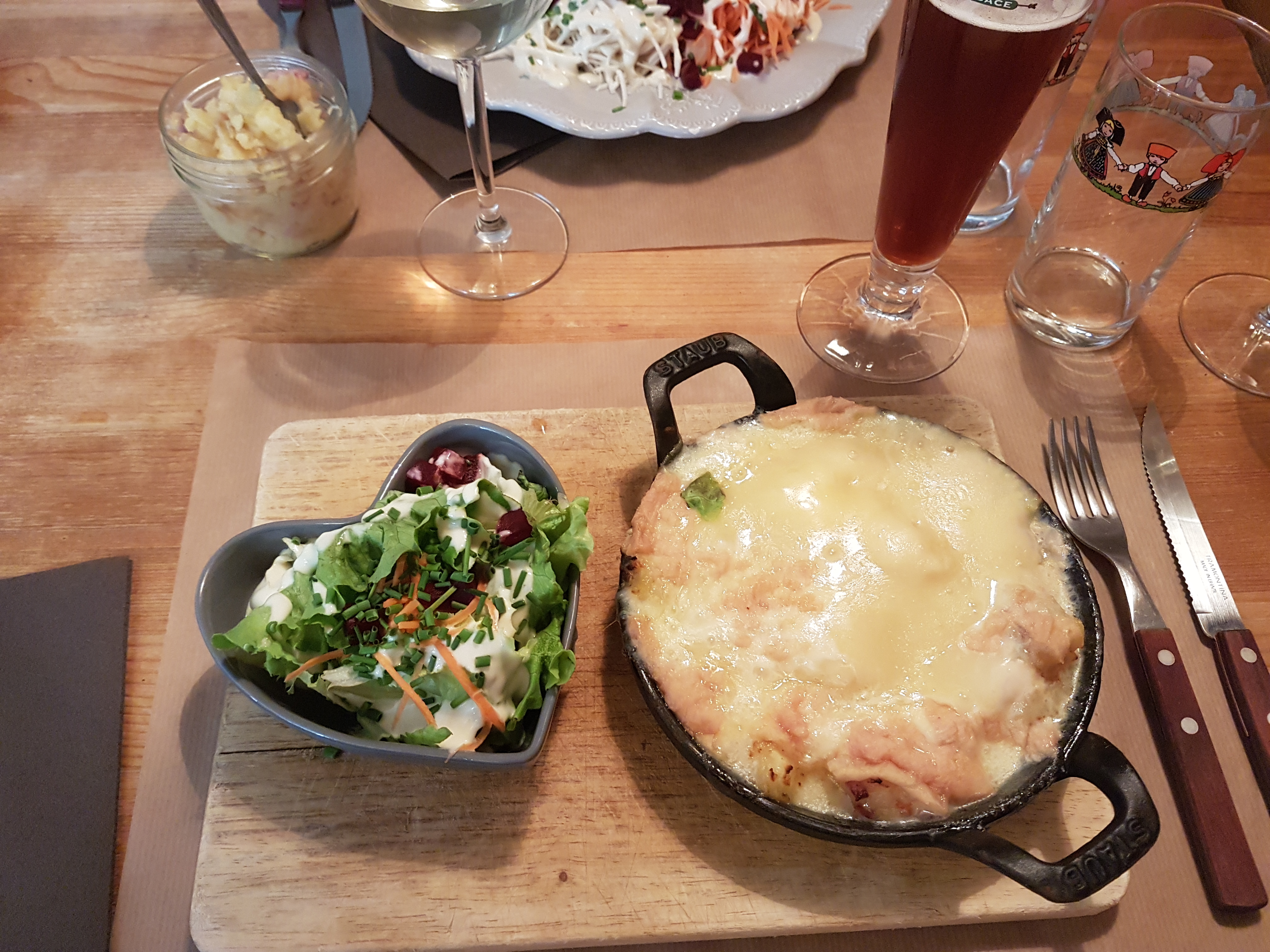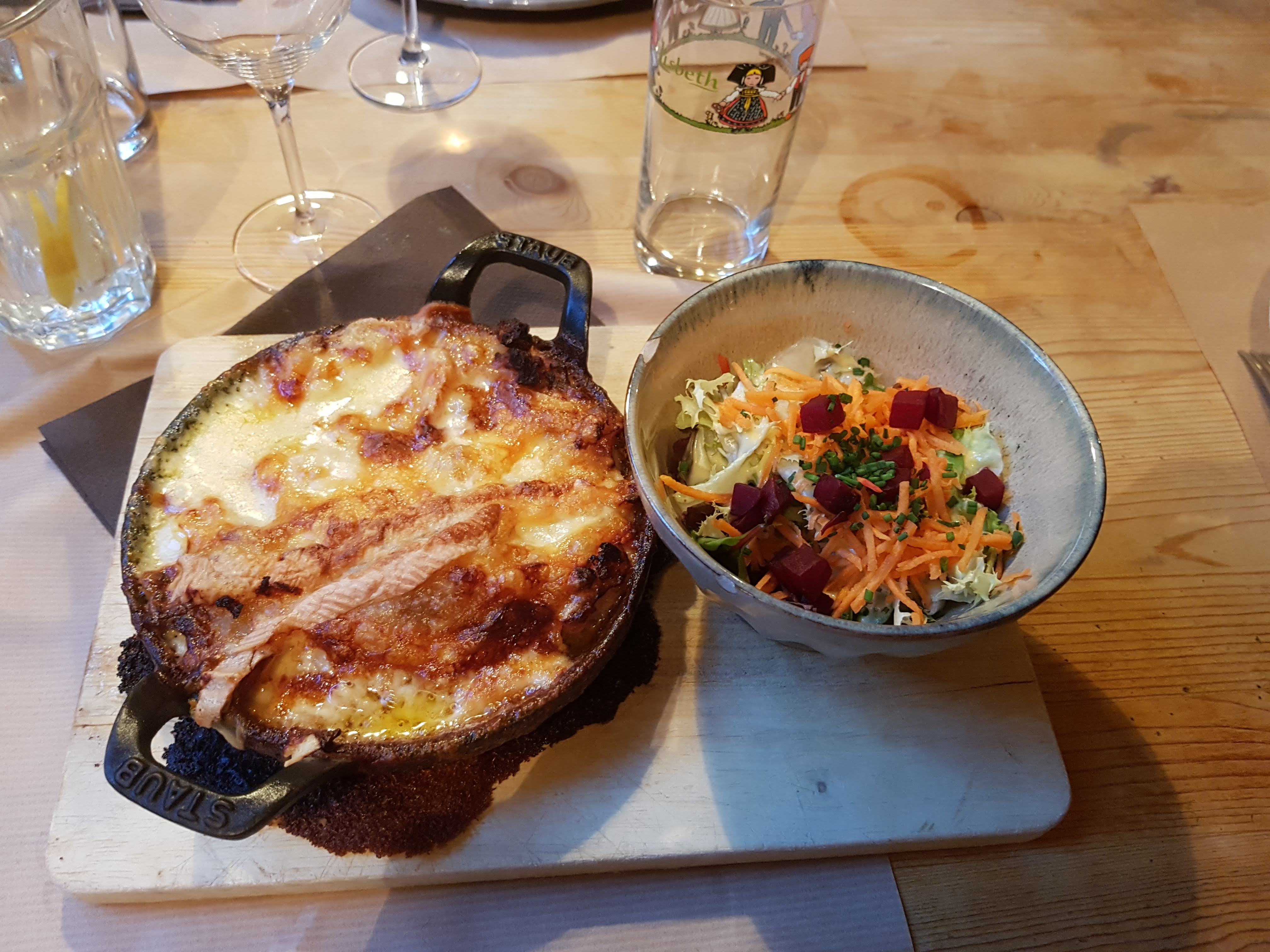 Nous avions réservé et heureusement ;) Il faisait un peu froid au Rdc .. le cadre est sympa , la serveuse souriante.Mais nous avions encore faim après notre tartiflette au munster ☹️