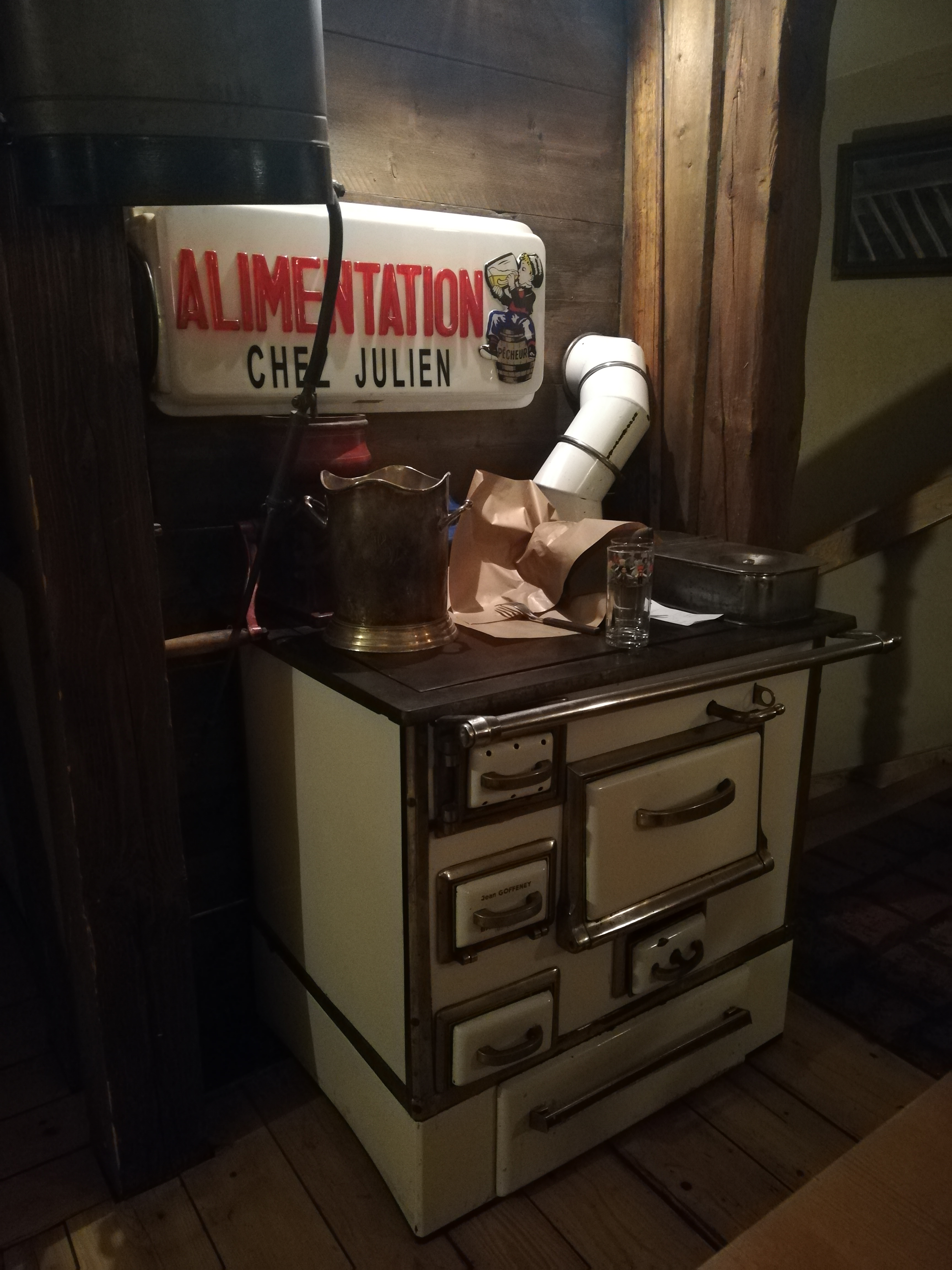Cadre vraiment joli en bois avec des éléments anciens qui rappelleront des souvenirs à beaucoup de monde. La choucroute est vraiment bonne, copieuse avec une belle tranche de poitrine fumée. Accompagnée d'un très bon vin d'alsace vous serez comblés! Service efficace et personnel agréable