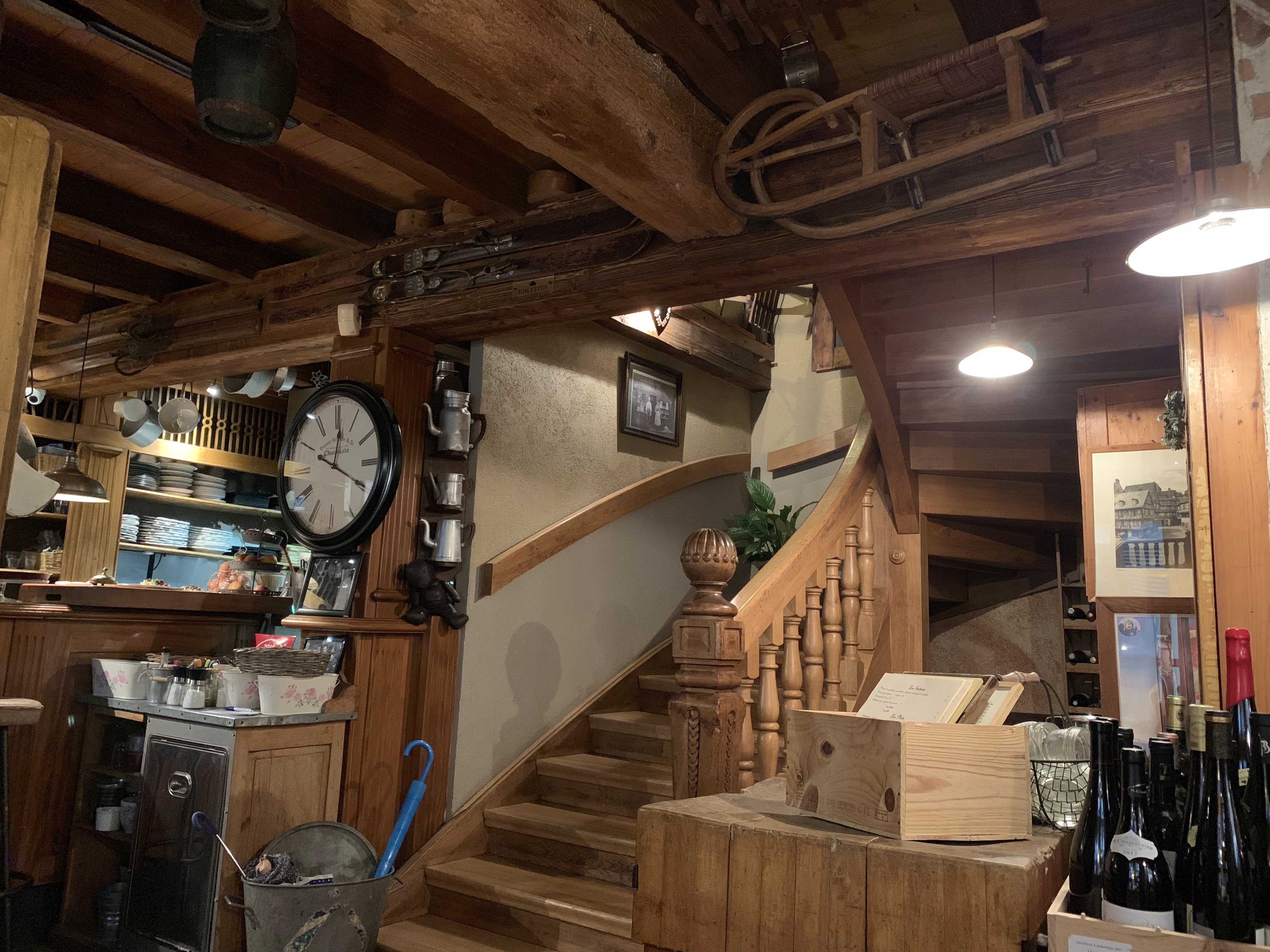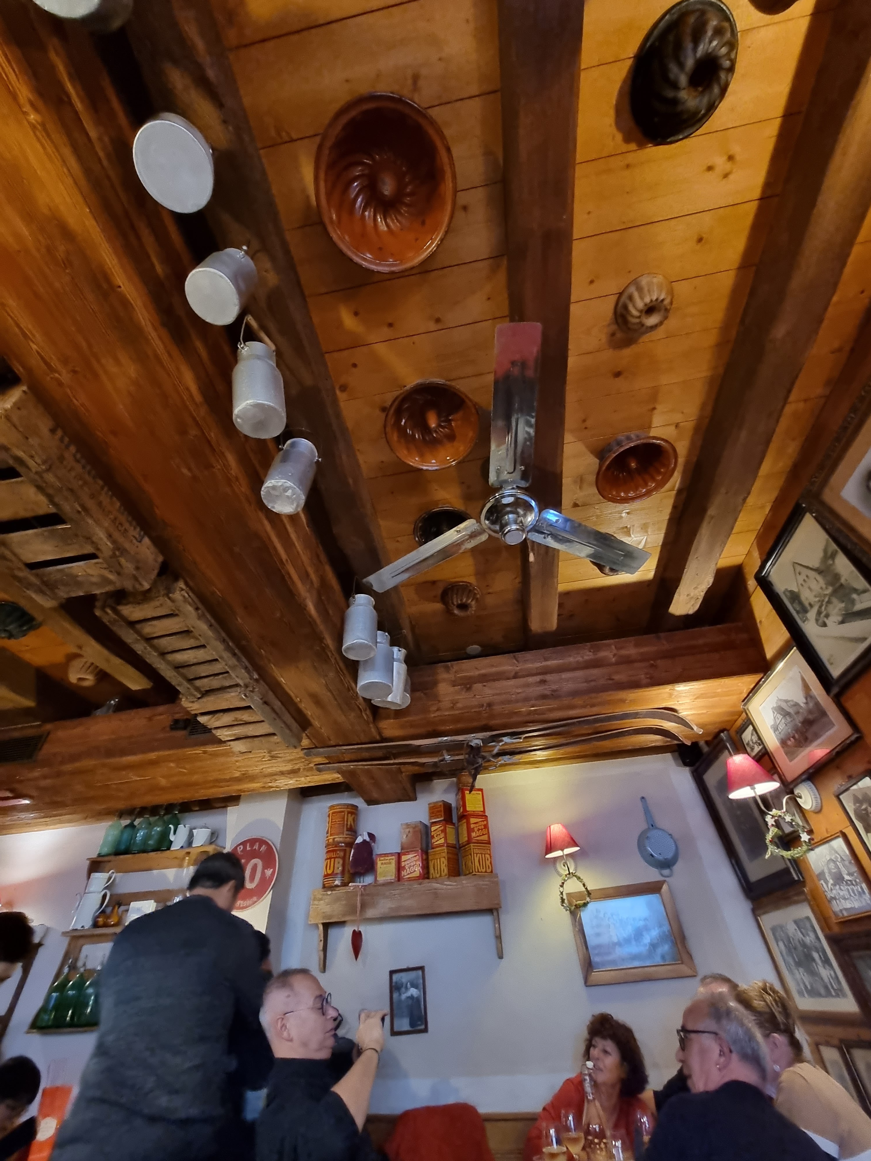 Restaurant, atypique et charmant mais cela ne fait pas tout. On est accueilli entre guillemets chaleureusement, on place à l’arrache. Les serveuses étaient plus que stressés et rapide, donc nonchalante dans leur service. En plus de ça, nous étions en bas, donc nous entendions tout ce qu’elle disait sur les clients du haut .. pas jojo.. Au niveau des plats, ça arrive relativement vite, poêlée au munster qualité présente mais quantités pas très présente.. Sur la carte, il n’y a même pas le prix des boissons soft .. Nous avons seulement mangé notre plat et avons payé une note très salée .. Pour un coca et un verre de crémant et deux poêlées munster .. Restaurant recommandé oui et non, ils ont leur bien et leur mal.