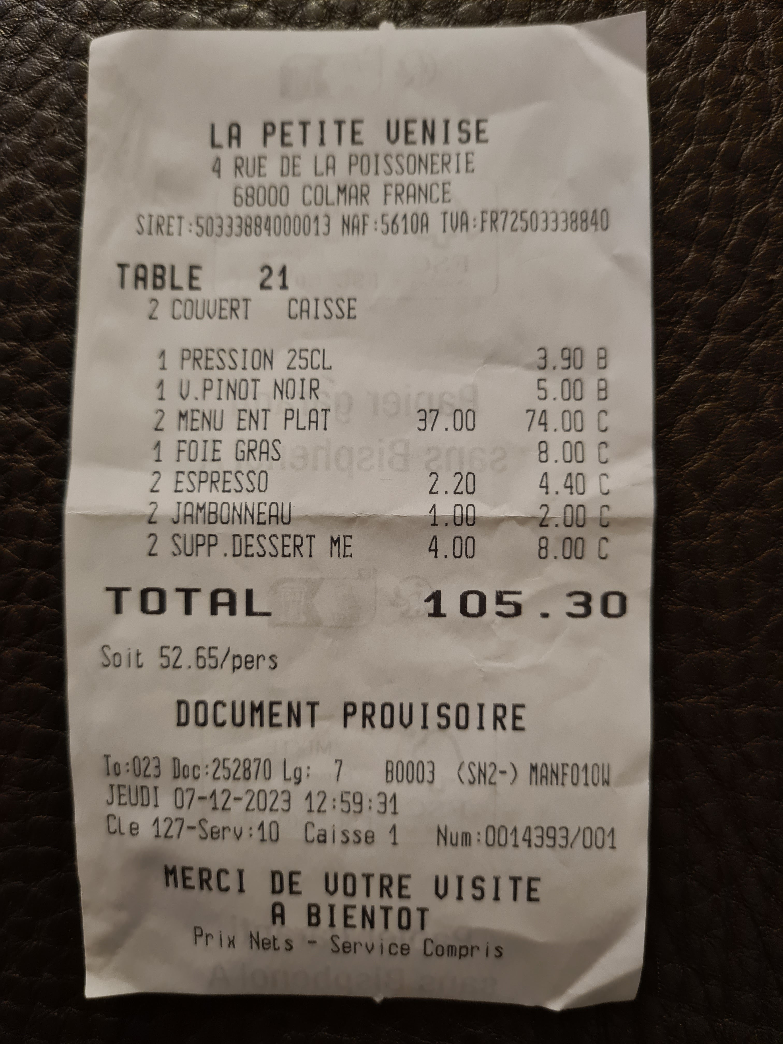 Un restaurant typique à faire si vous vous rendez à Colmar ! Par contre, pensez bien à réserver à l'avance, surtout à la période de Noël.