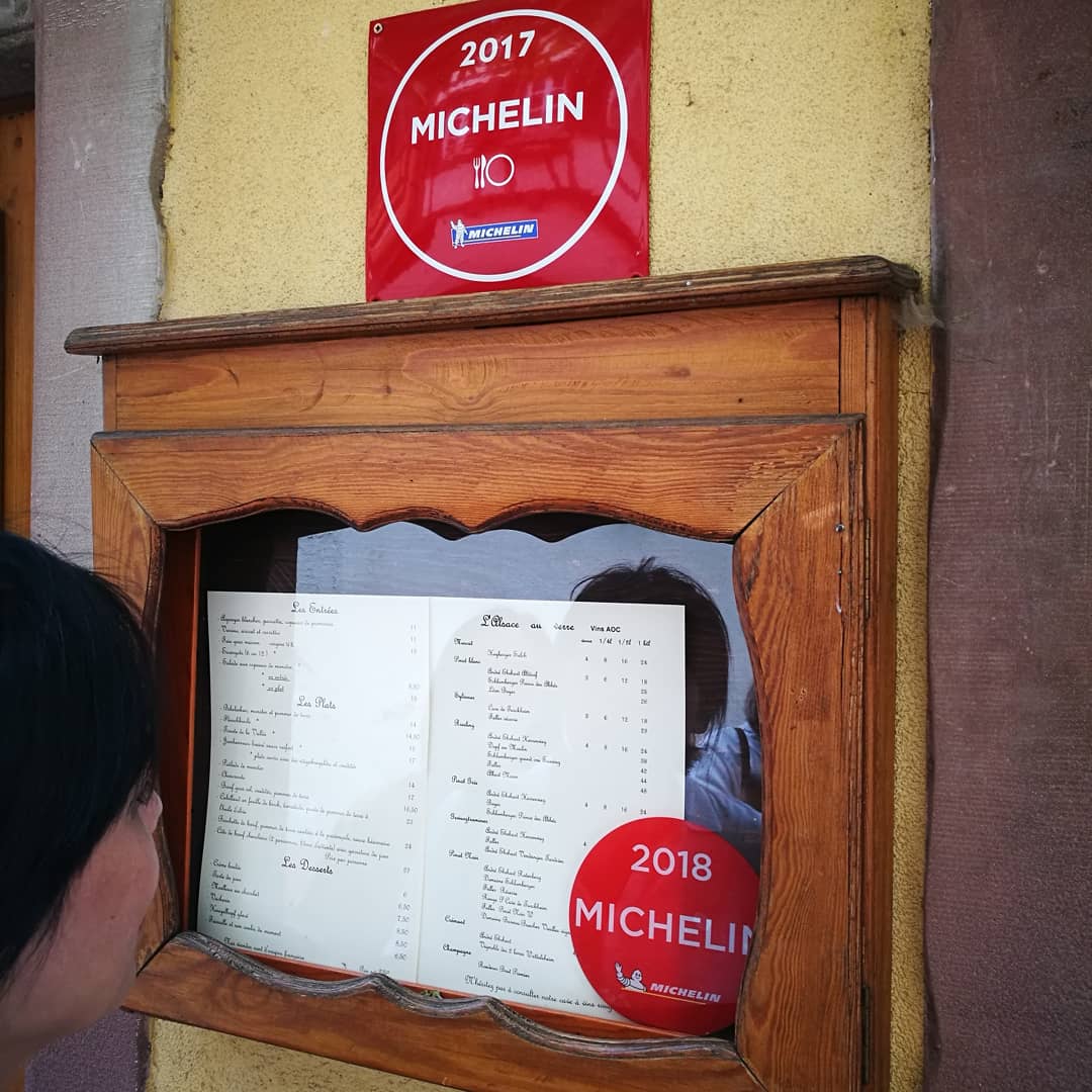 A part le sourire des serveuses, le repas était vraiment simple. Les pommes de terre trop cuites et les boulettes de viandes, spécialité alsacienne, nous ont visiblement rendu malade car nous avons tous les symptômes d une intoxication alimentaire le lendemain de notre repas. Du coup retour de vacances le ventre plié en deux et allez simple à la pharmacie ce matin en se réveillant d une nuit d indigestion. Le cadre est pourtant sympa, les photos et le Michelin nous avait inspiré mais méfiez vous des boulettes de viande. La direction n à pas l air très attentive à la qualité des produits cuisinés qui n ont rien à voire aux descriptions que l on voit sur le site. J appelle le service d inspection sanitaire pour faire le point sur les frigo de ce restaurant.... Dommage pour nous car cela nous a gâcher notre fin de vacances...