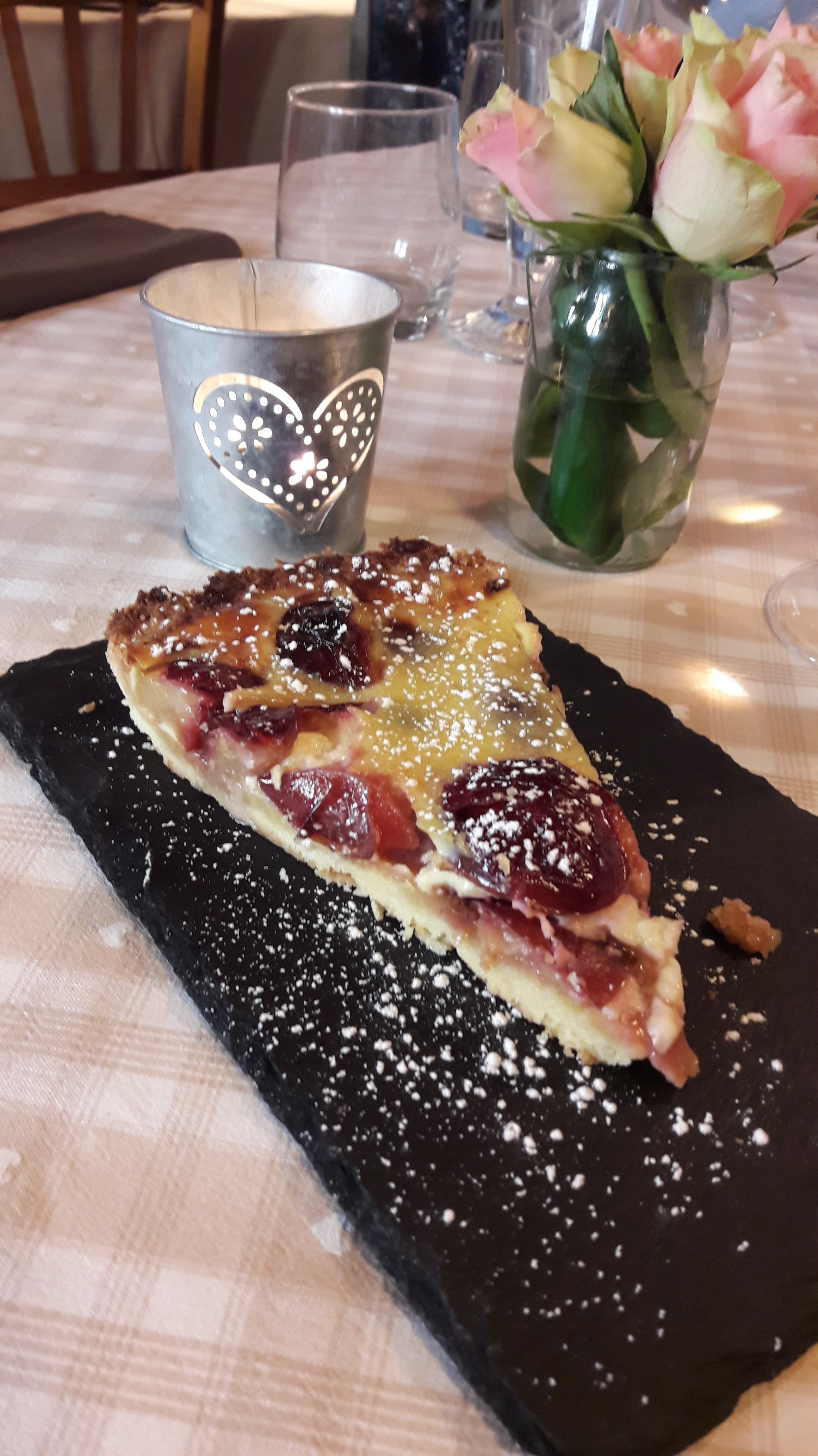 Un délice, j'ai commandé une part de tourte des vallées. Succulent, avec des pommes de terres fondantes et rissolées😋 le baba au rhum ressemblant à la forme du kouglof était vraiment agréable en bouche