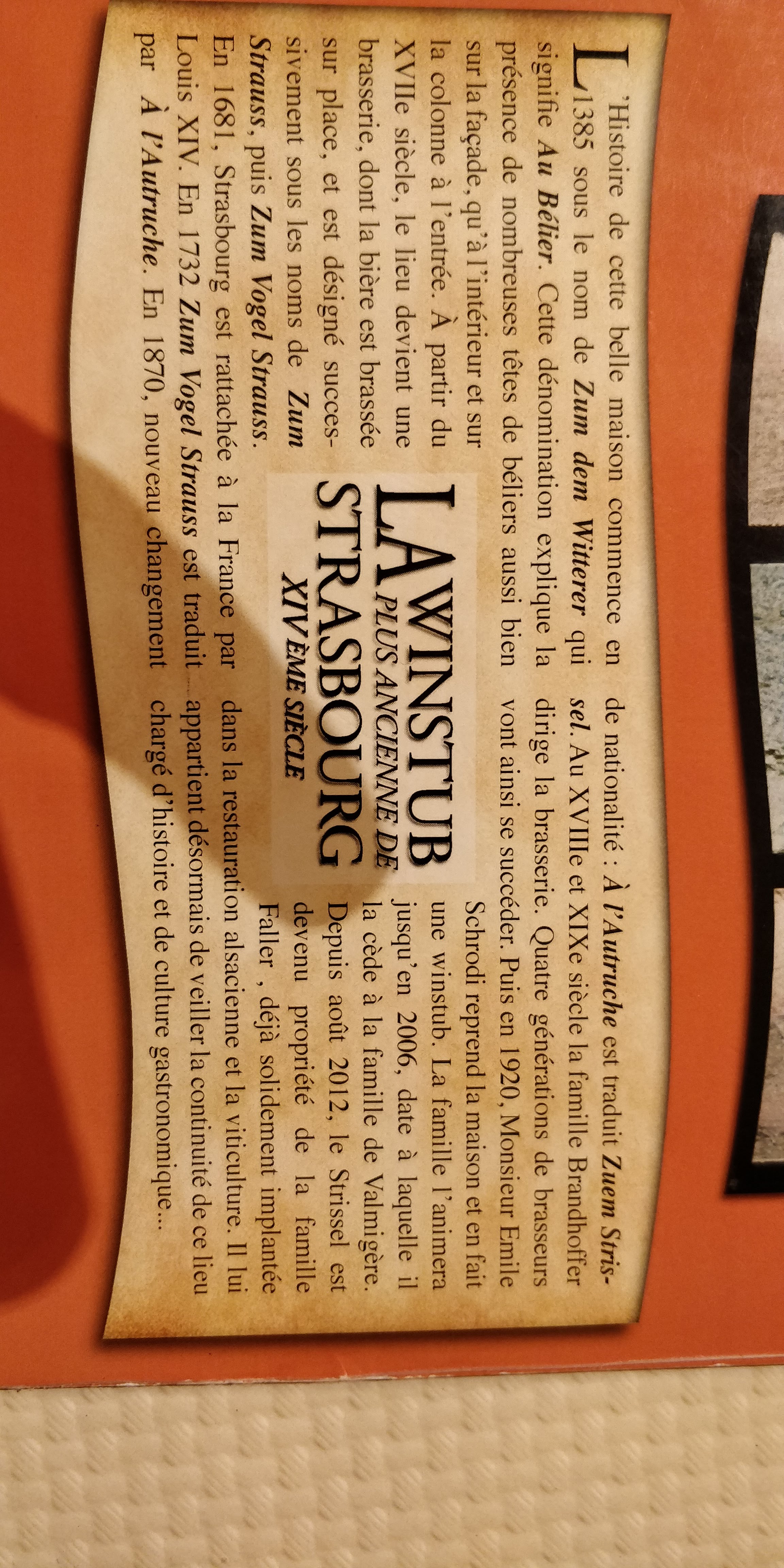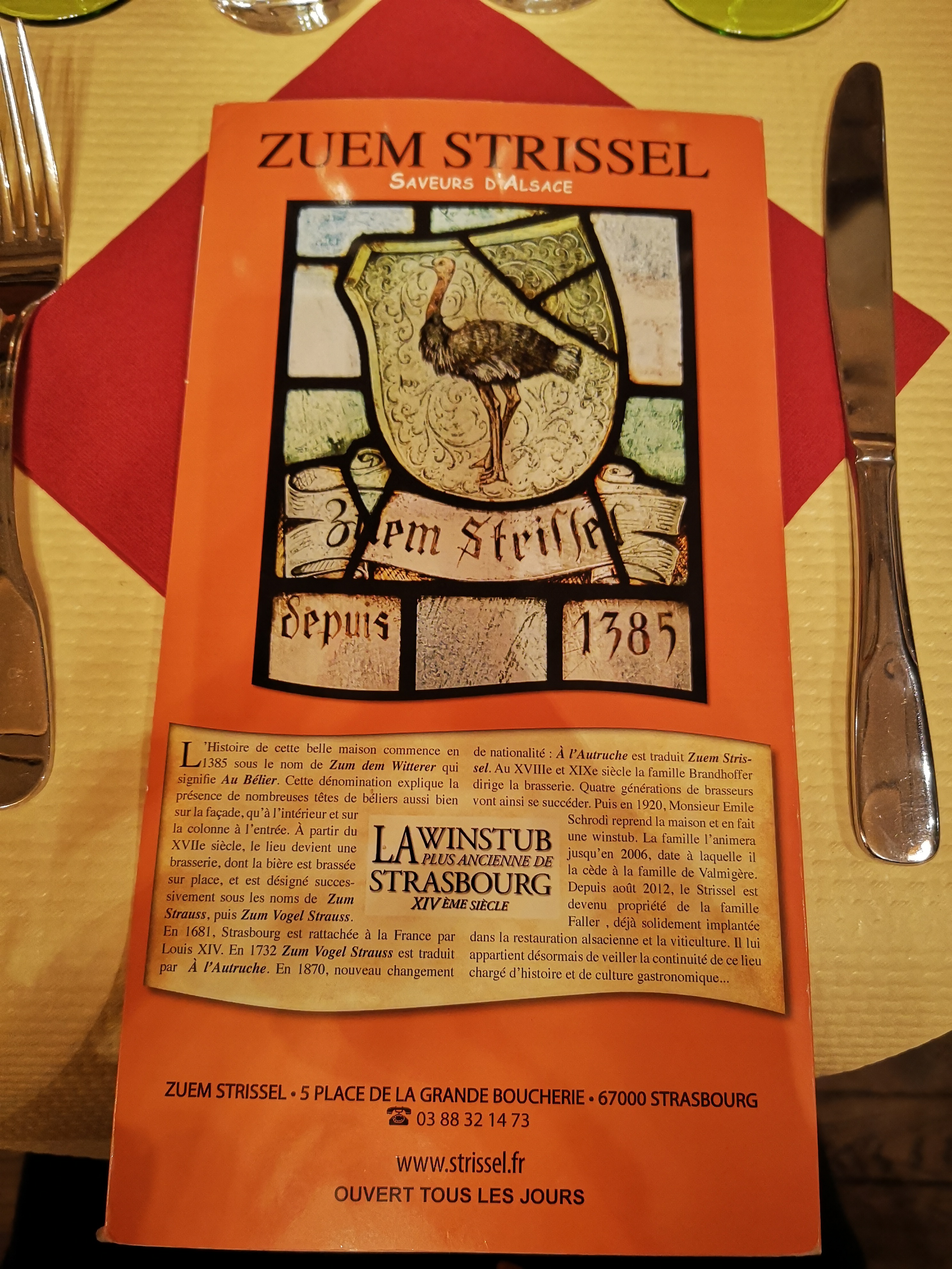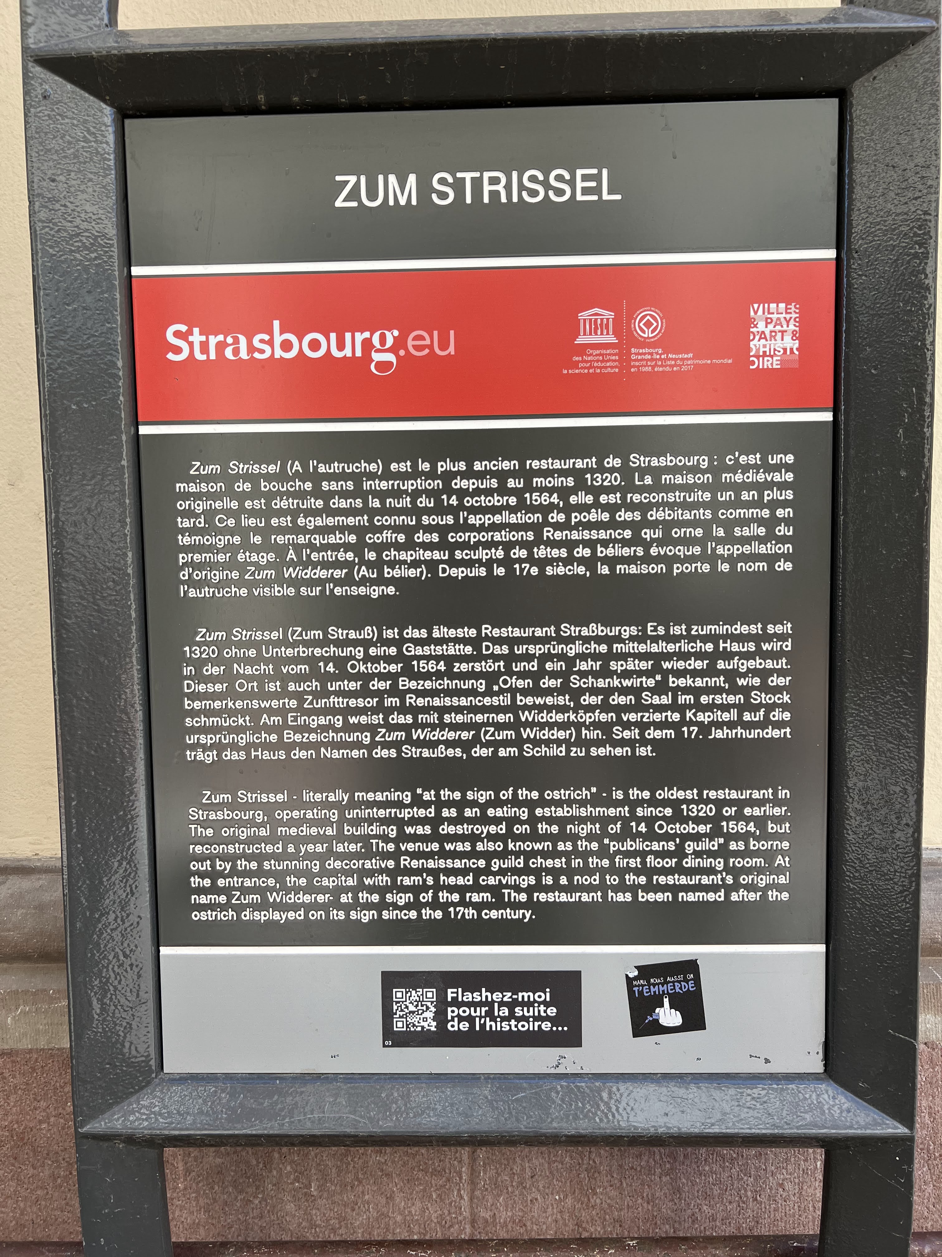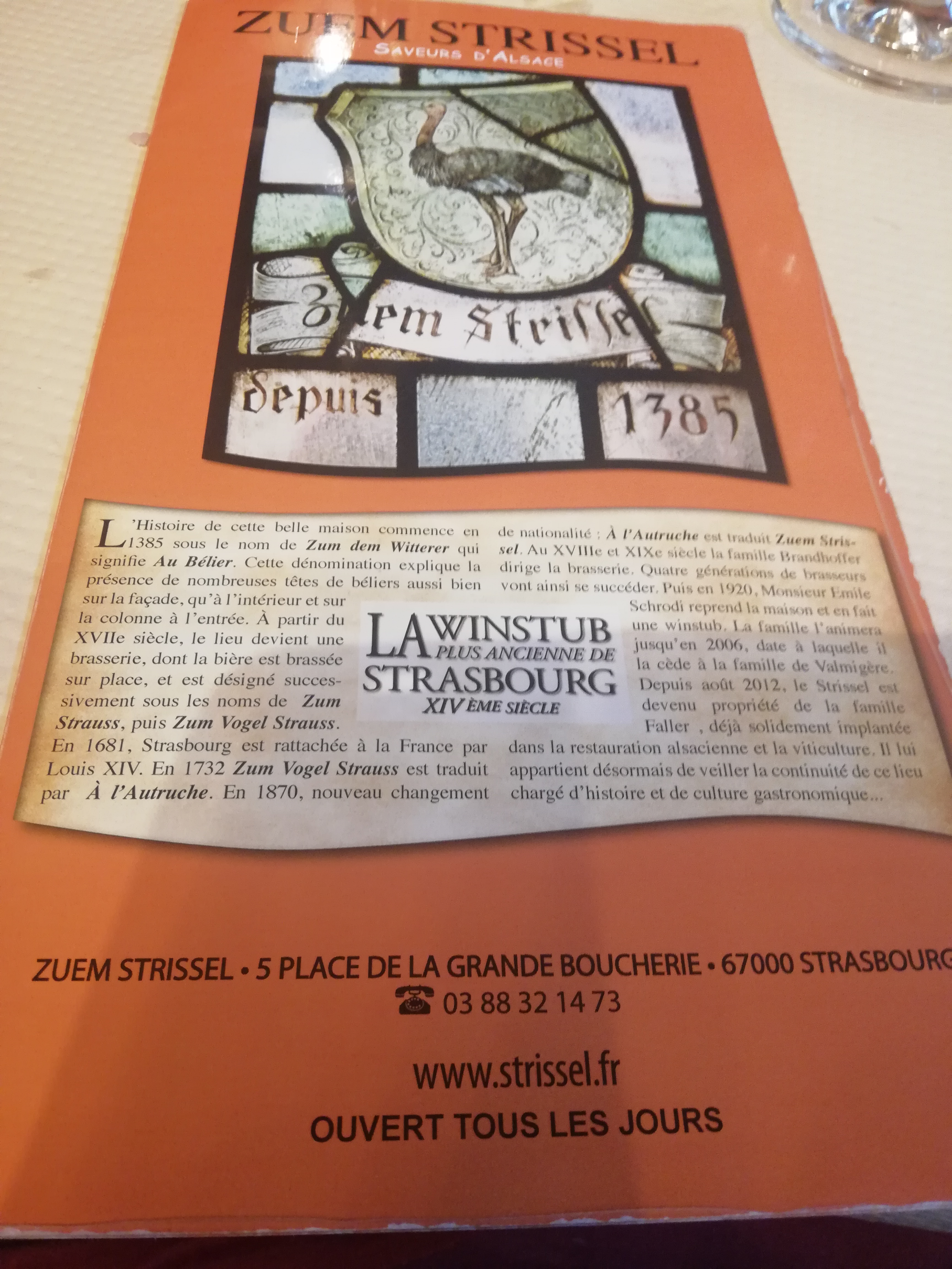 le plus ancien restaurant de Strasbourg en activité depuis au moins 1320. Mais pourquoi l' Autruche...