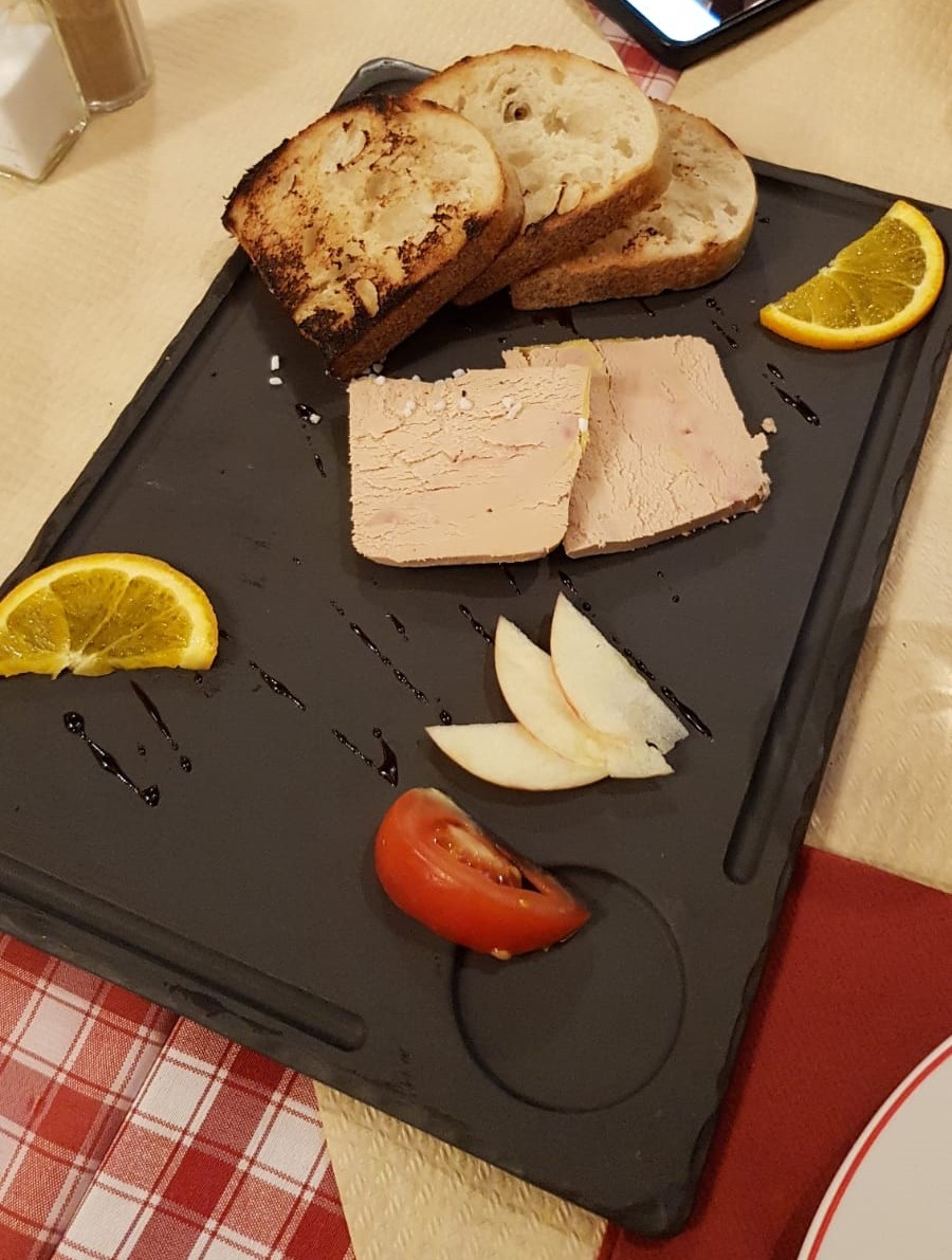 Cadre typique. Foie gras poêlé tout petit même en grande assiette, servi sans accompagnement. Bon, mais m'a laissé un peu sur ma faim. Courant d'air froid dans la salle du rez-de-chaussée, car porte laissée ouverte pour servir la terrasse, chauffée en hiver. L'ambiance doit être meilleure au premier étage. Petite déception pour ma première fois dans ce restaurant qui a bonne réputation. À titre de comparaison, j'ai préféré mes expériences au Gruber ou au Tire-bouchon, restaurants voisins dans le quartier touristique typique de la cathédrale.