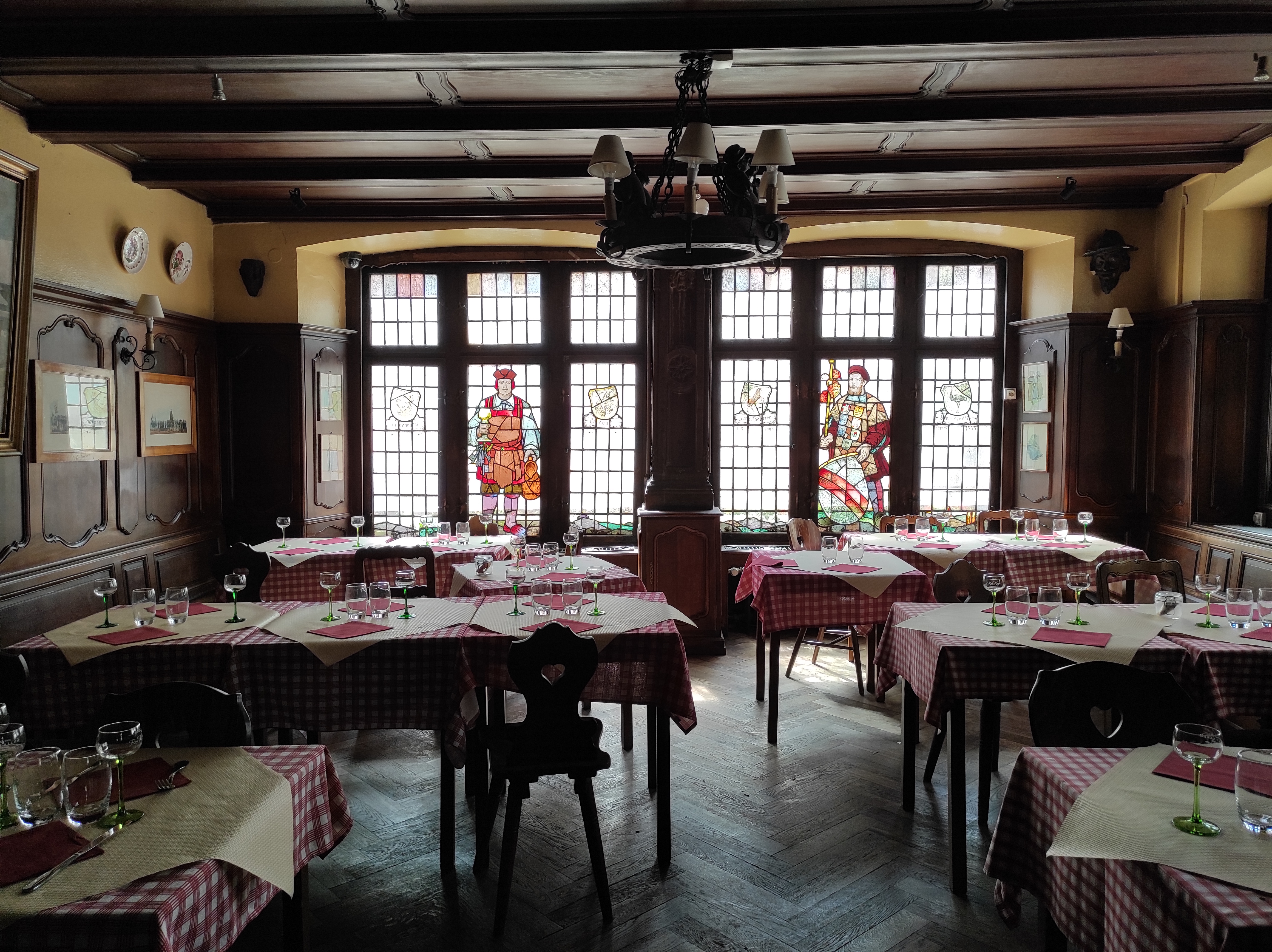 Personnel accueillant et souriant, très agréable, le restaurant est superbe (demandez l'étage et vous ferez un bond de plus de 5 siècles en arrière!). Et la choucroute pour 2, succulente, c'est plutôt pour 2...+2!