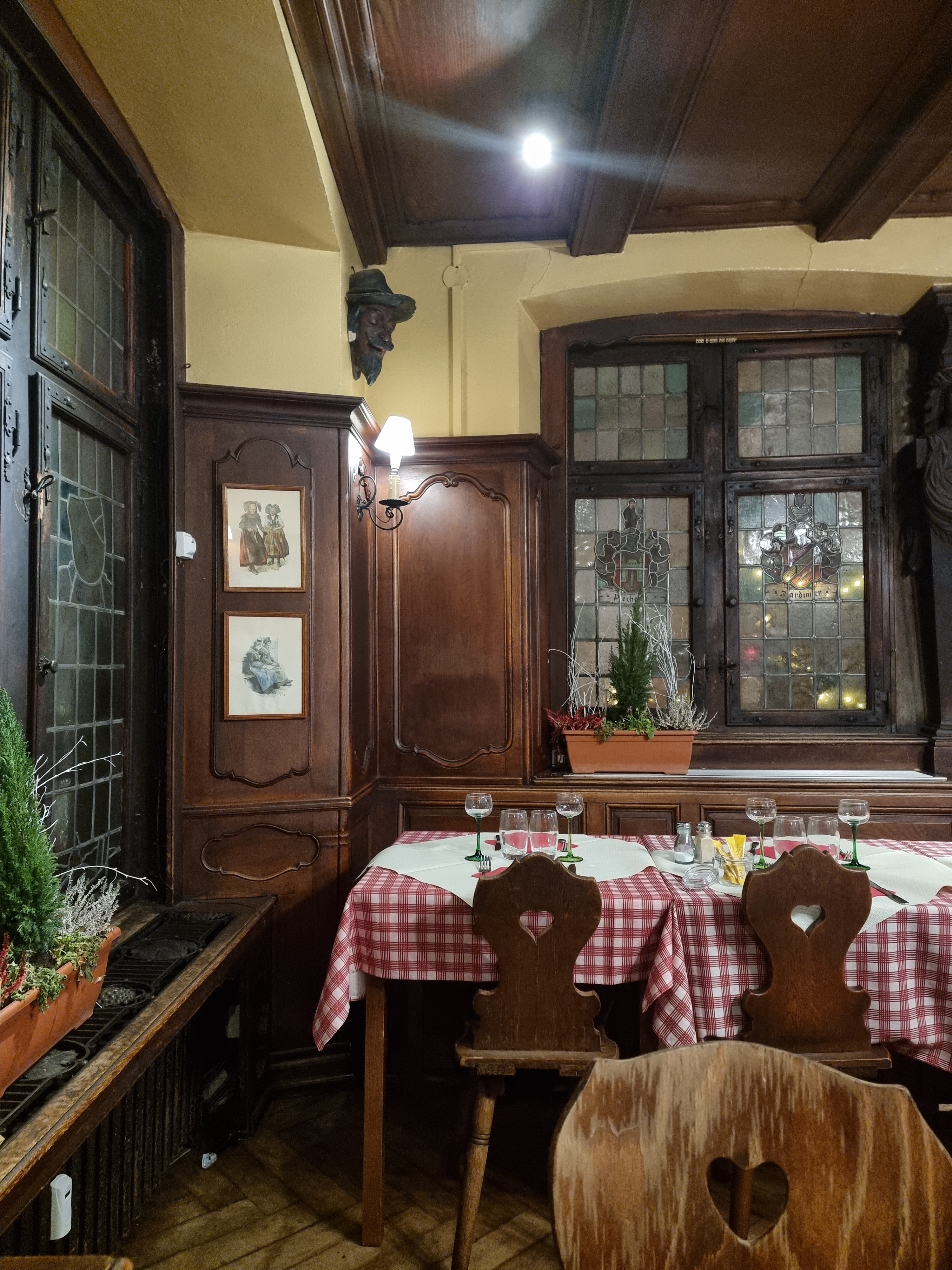 Nous pensions que la qualité allait être a l'image de la maison mais nous avons été très déçu. Choucroute digne d'une boîte de conserve. coq au riesling inmangeable. Même le saucisse frites de mon fils de 4 ans ne lui a pas donné envie. Une honte. Je pense que ce restaurant profite de sa situation idéale sur le marché de Noël pour bien faire du fric sur les gens de passage. établissement à éviter absolument.