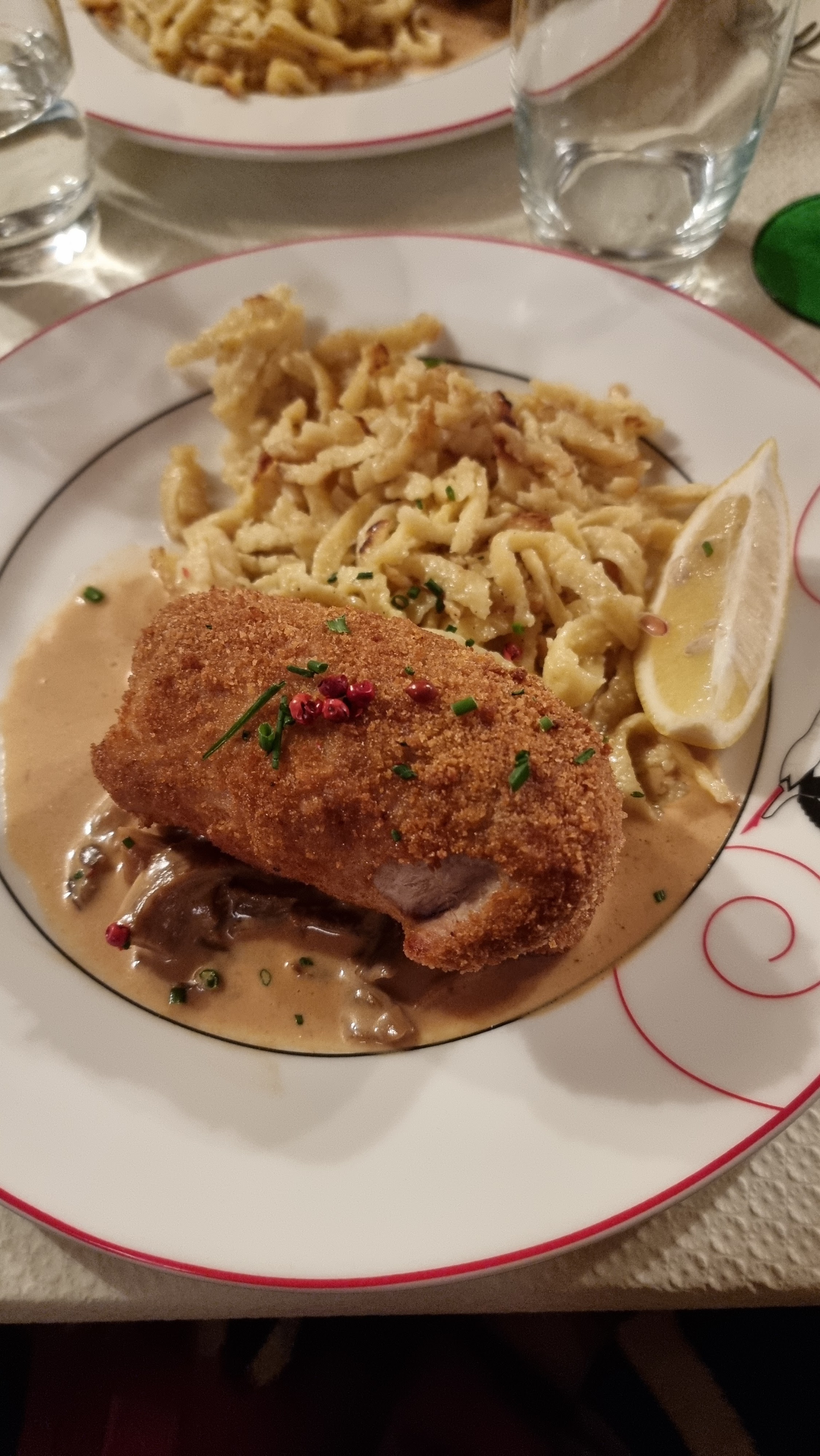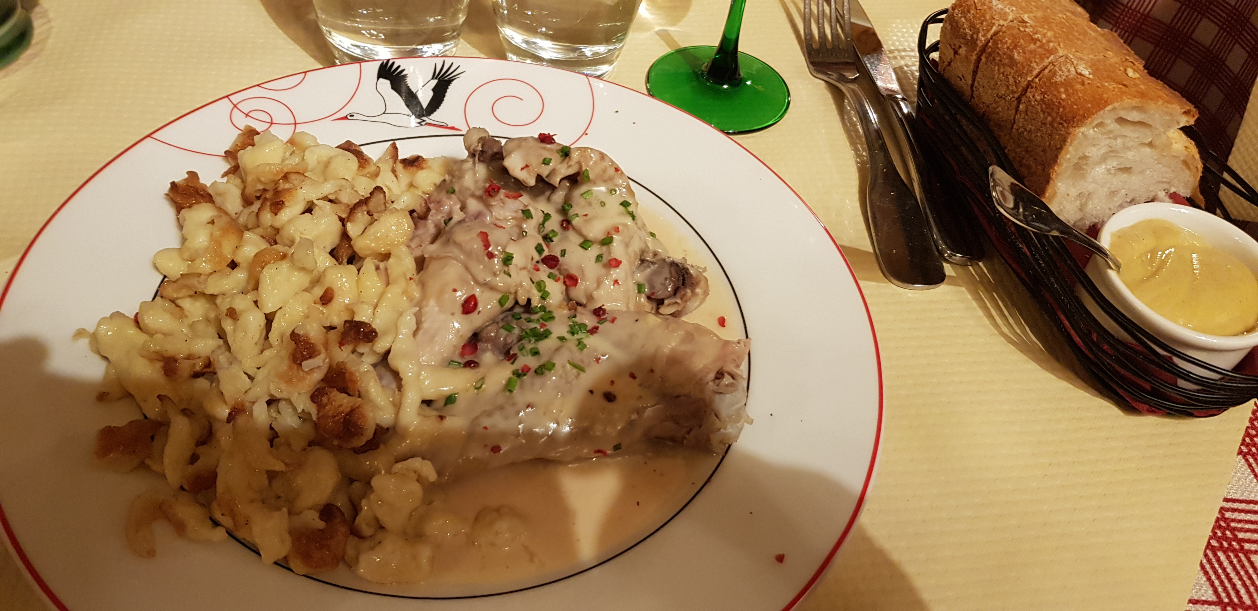Le cadre est magnifique et l'ambiance très agréable quoique un peu bruyante quand il y du monde. Les plats sont excellents notamment le jarret de porc avec ses spatzles !!!
