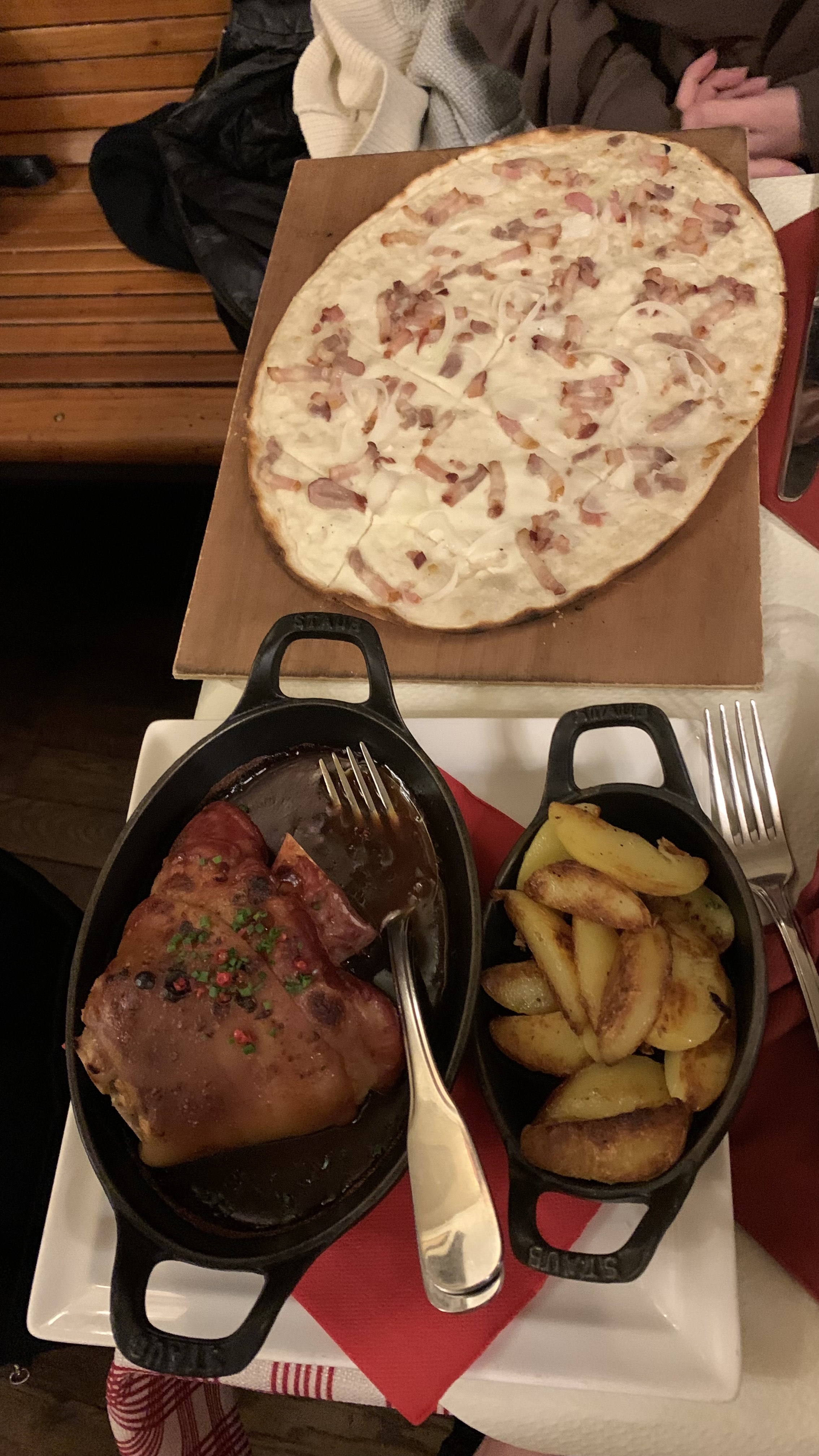 La tarte flambée munster et le jarret de porc étaient excellentes! Service très sympa.