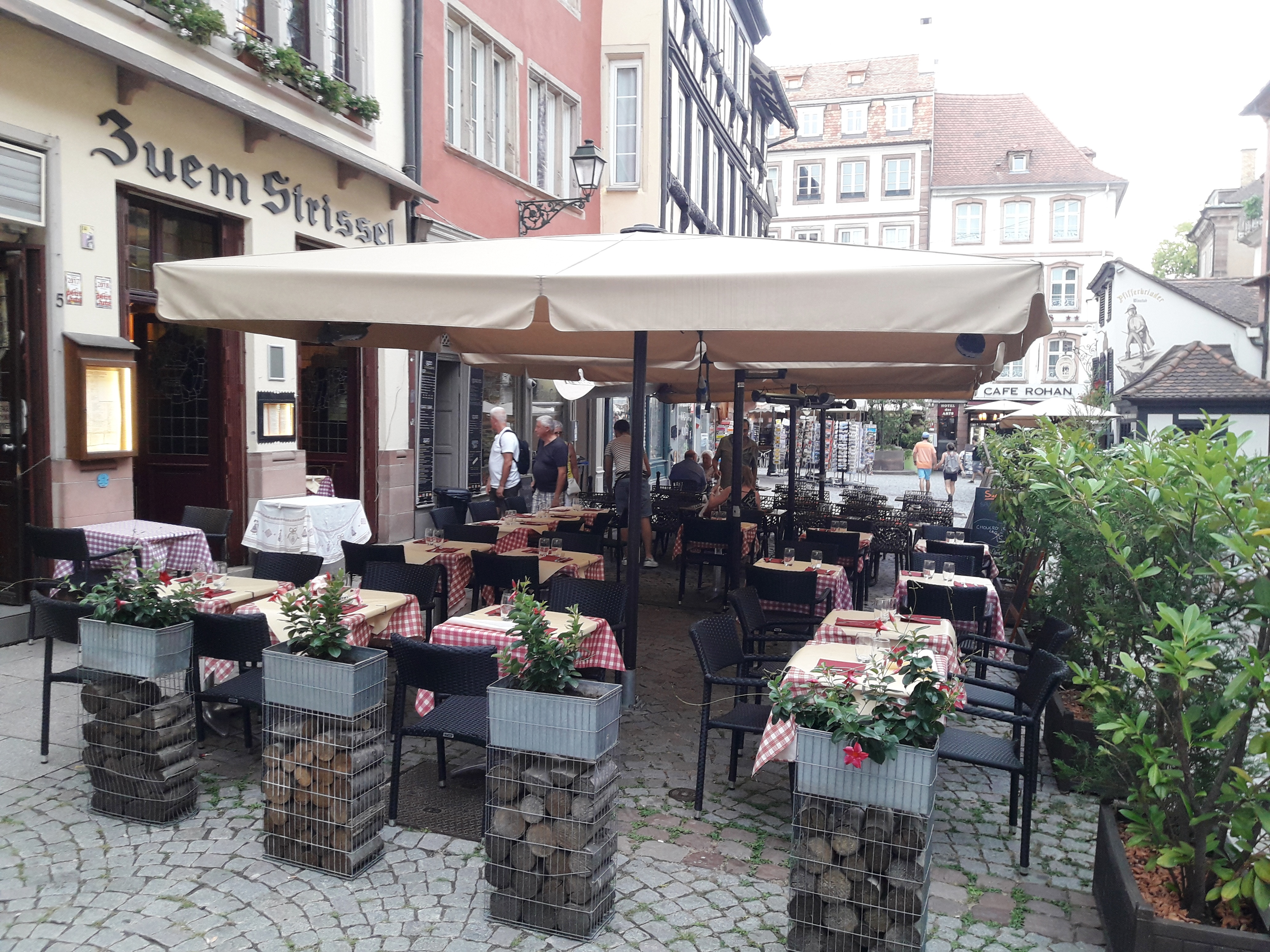 Nous voulions manger dans un winstub pour déguster les spécialités alsaciennes. Nous étions en terrasse, les serveuses étaient sympathiques mais vraiment pas expérimentées. Les baeckeoffes étaient bons mais le pain pour saucer était dur et décongelé (la serveuse m'a prévenu lorsque j'en ai demandé, nous étions au service de 19h30 quand même). Le menu enfant était trop cher!