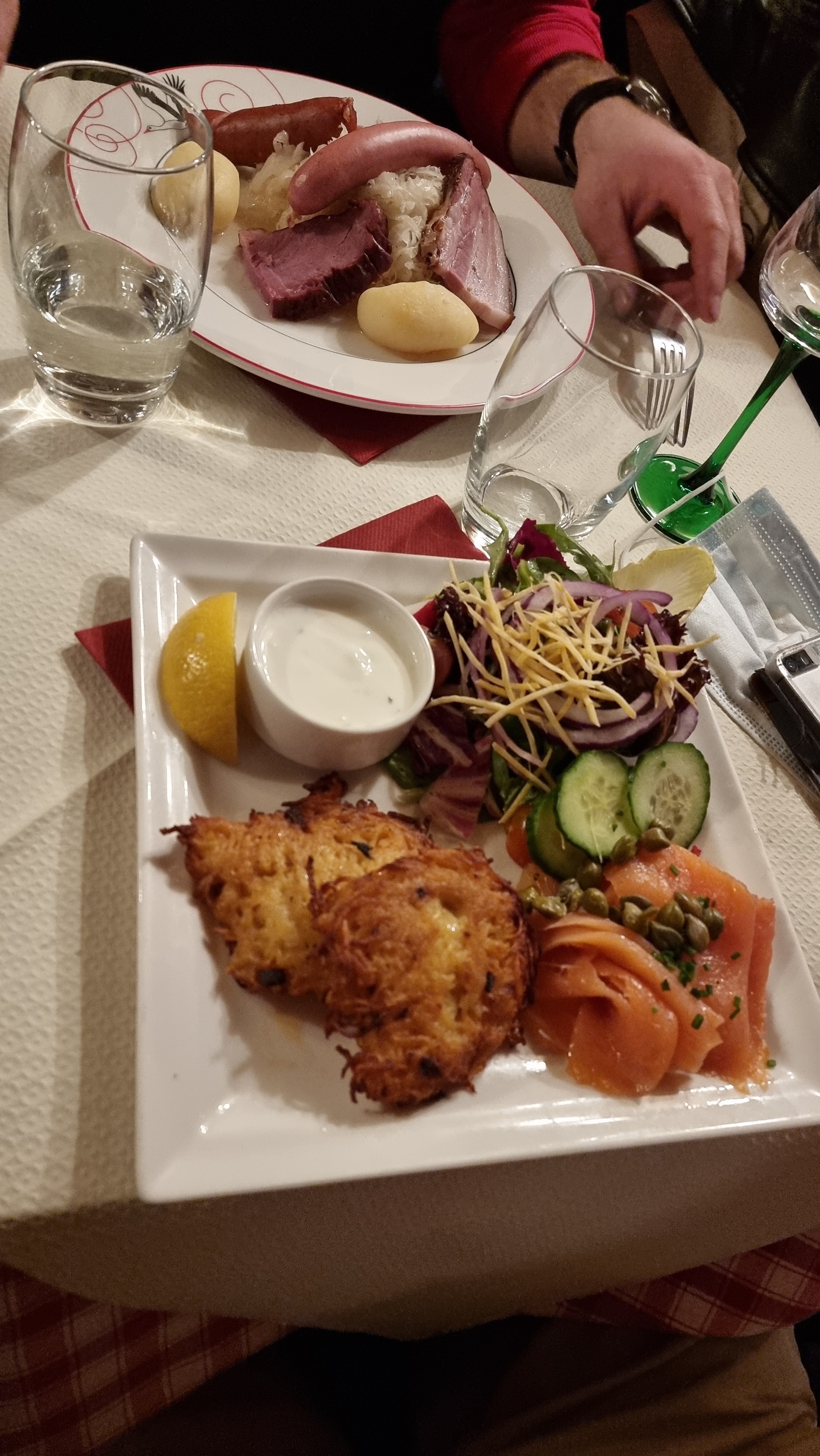 C'est un bon restaurant, dans un cadre traditionnel alsacien. En revanche, j'ai été déçu par les galettes de pommes de terre qui s'écartent un peu trop de la recette originale...
